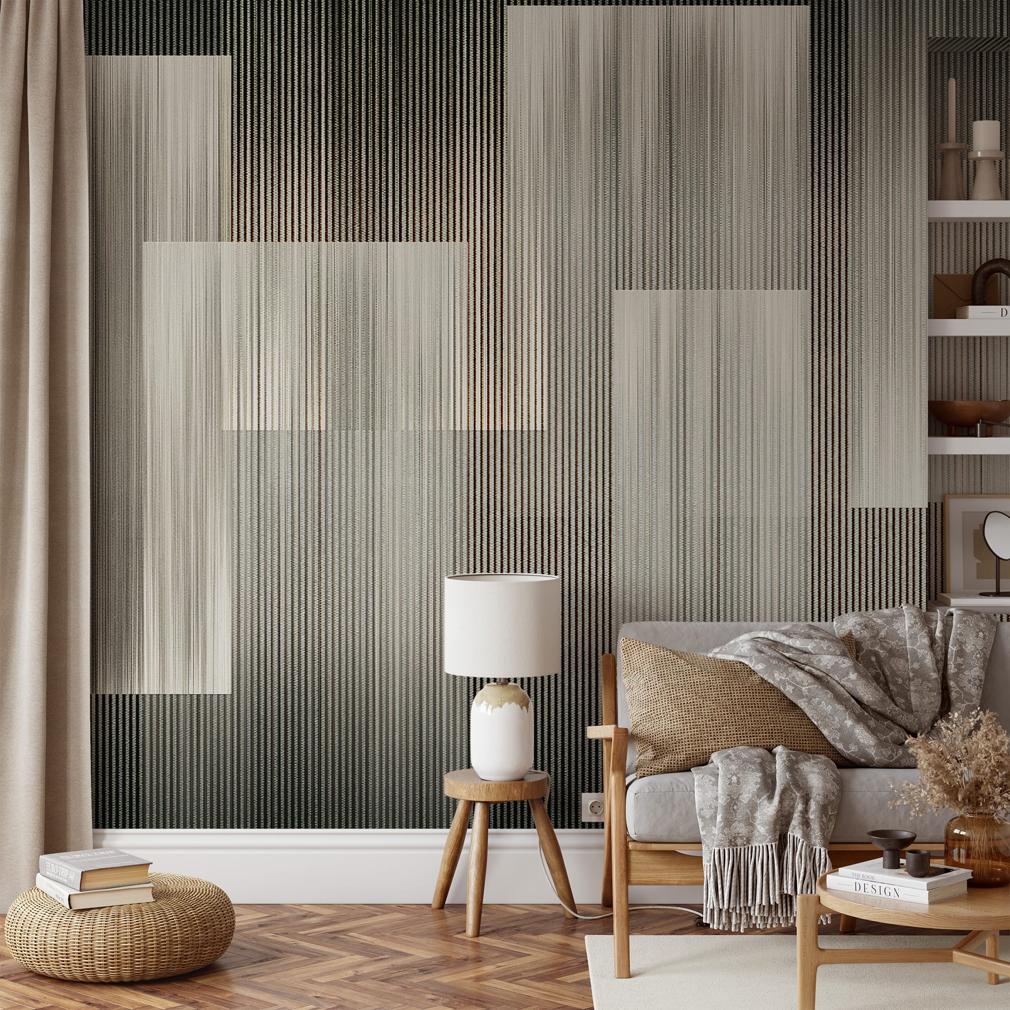 Abstract Neutral Vertical Line Peel and Stick Wallpaper, Modern Grey Geometric Block Wall Mural, Contemporary Line Art Removable Wallpaper abst-0015