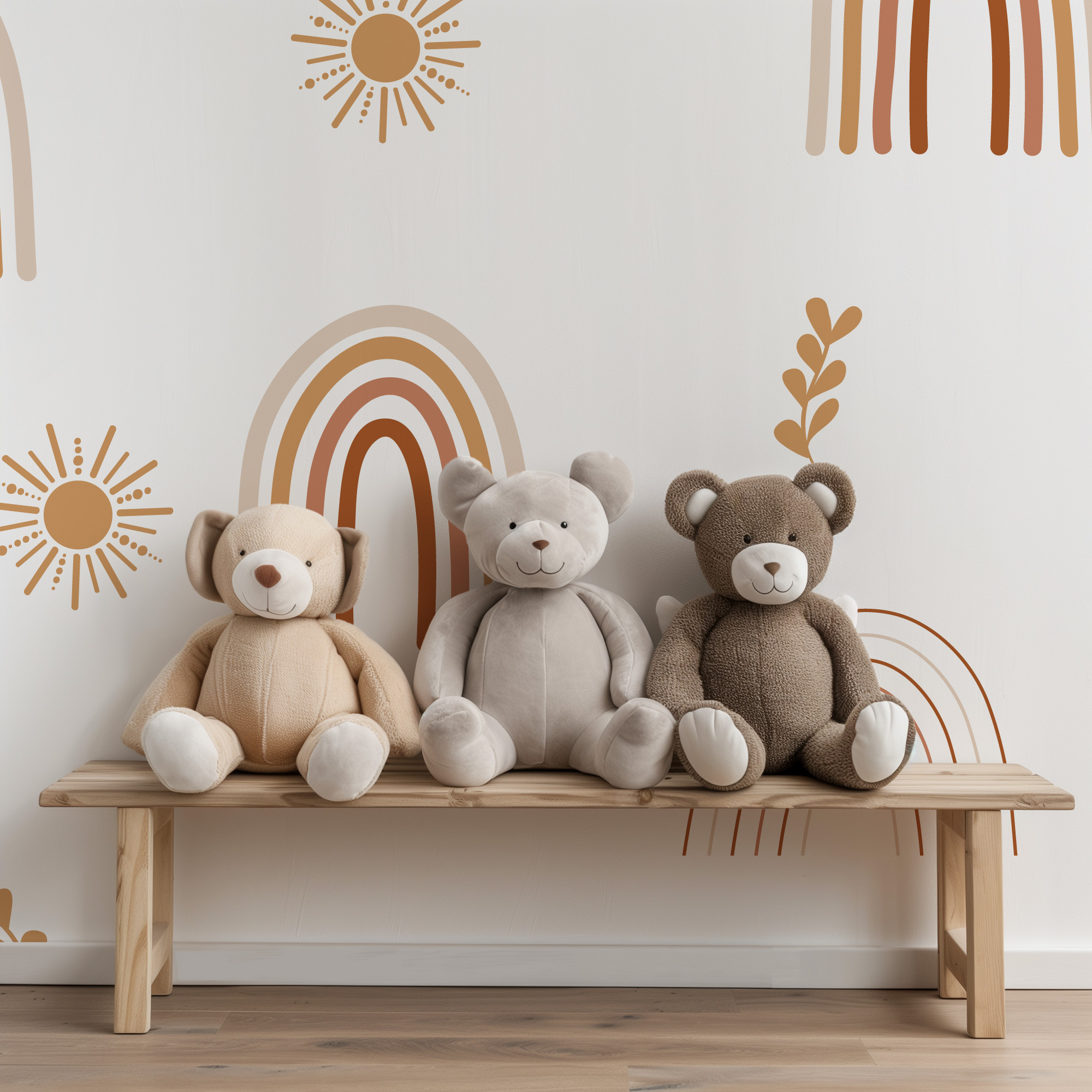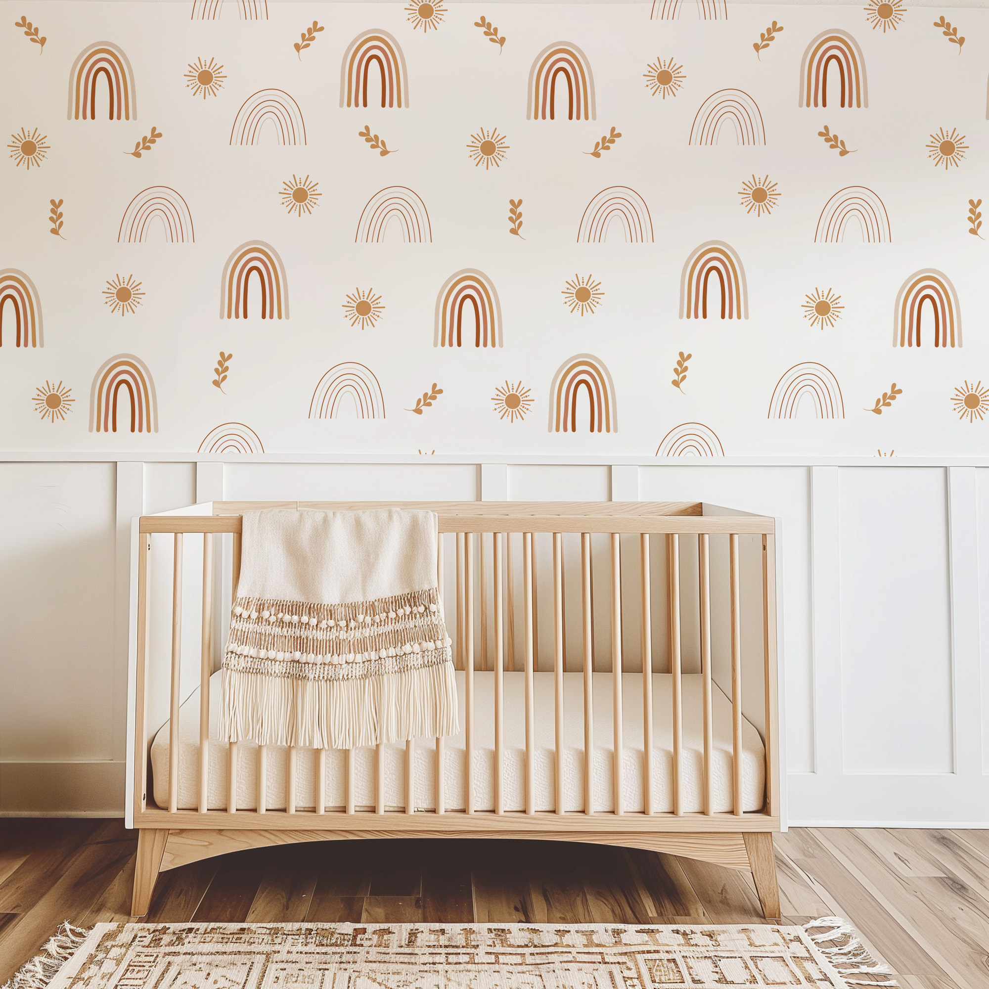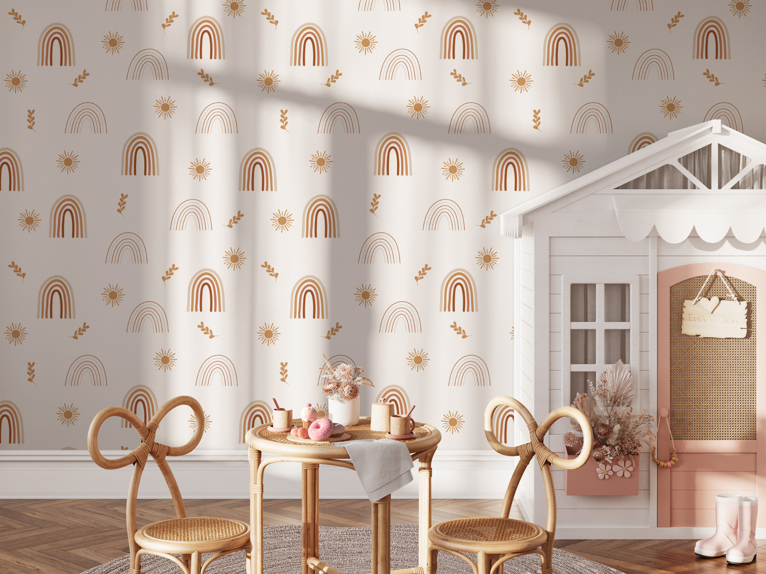 Boho Rainbow and Sun Kids Peel and Stick Wallpaper, Earthy Terracotta Nursery Wall Mural, Minimalist Scandi Decor kids-0018