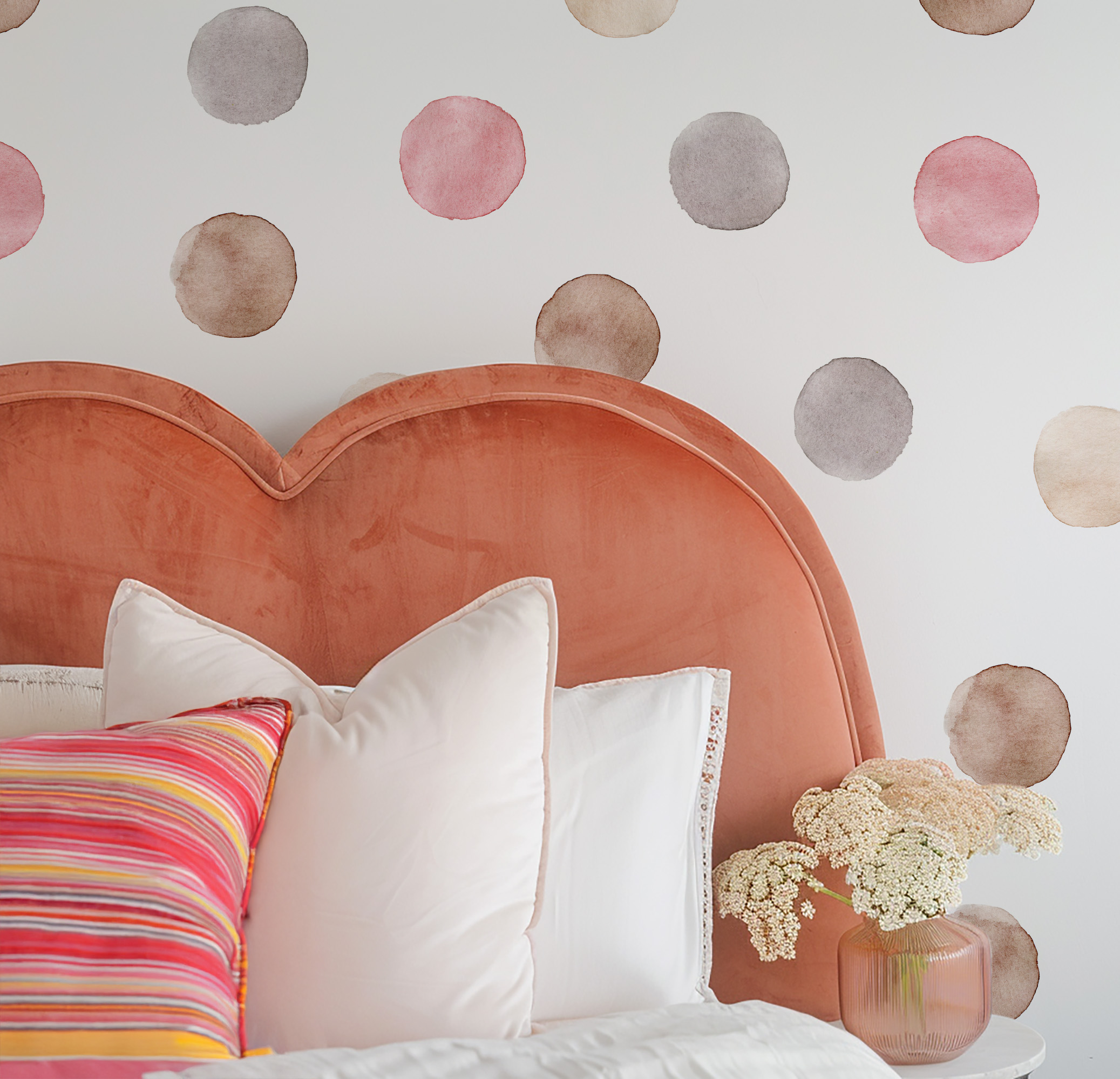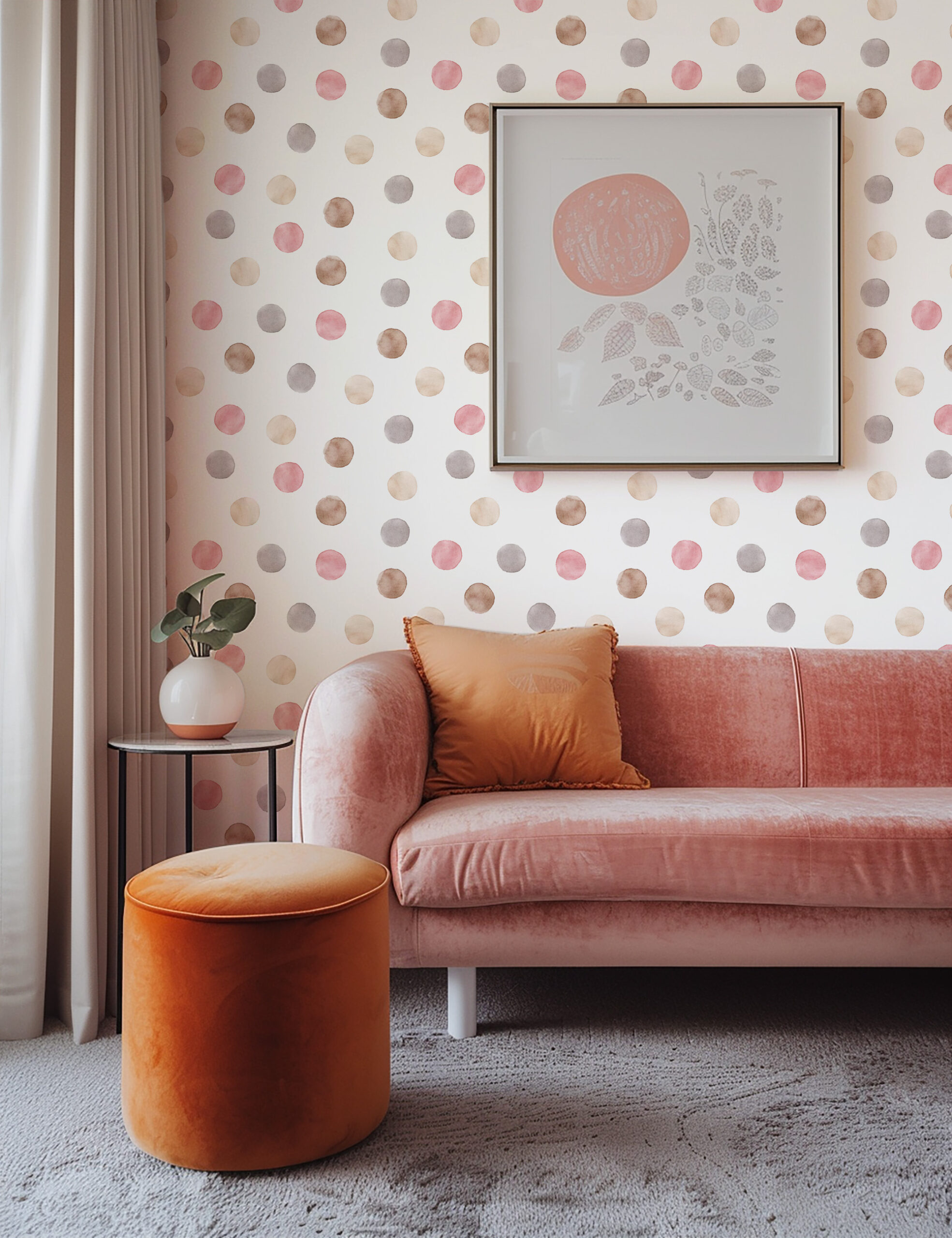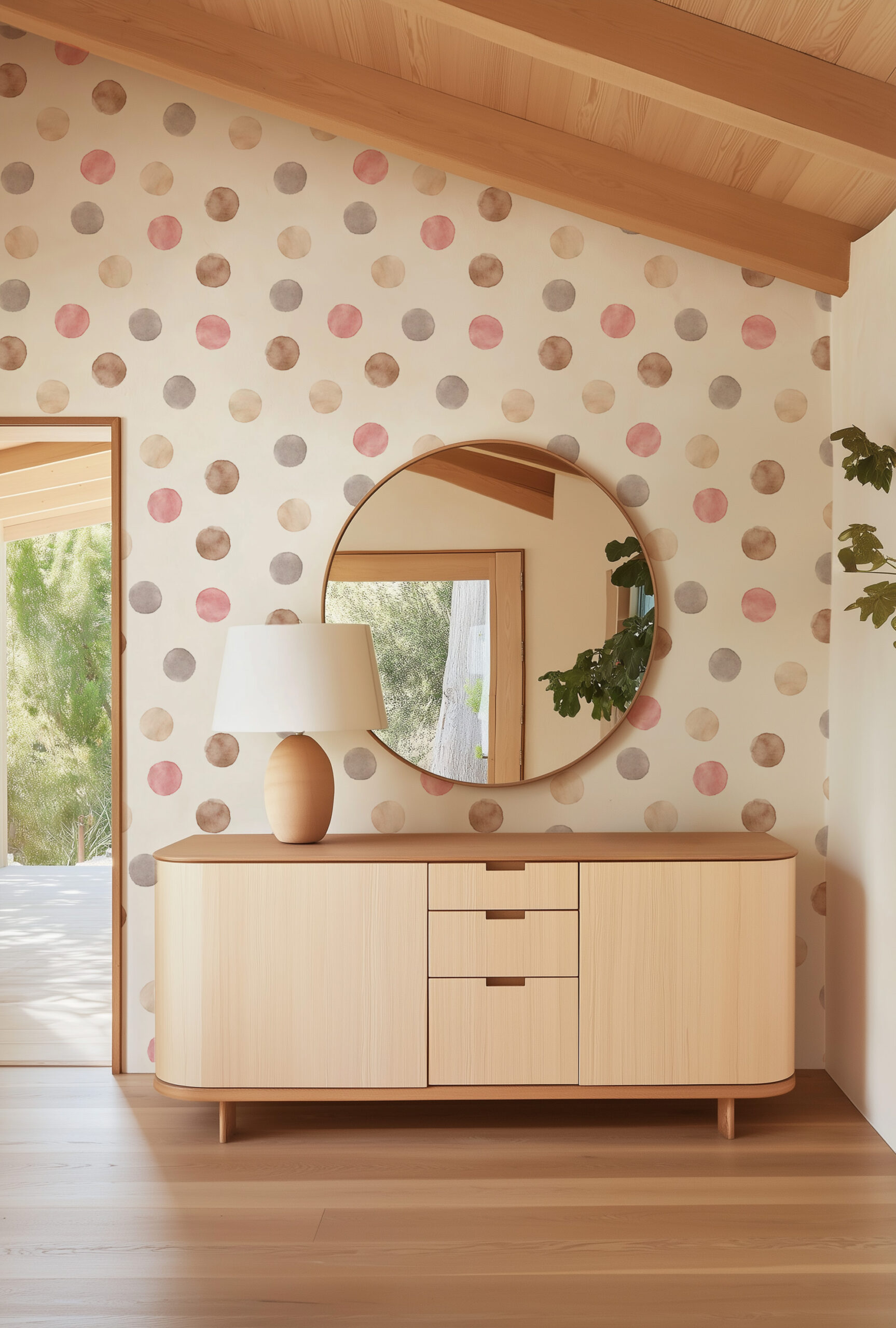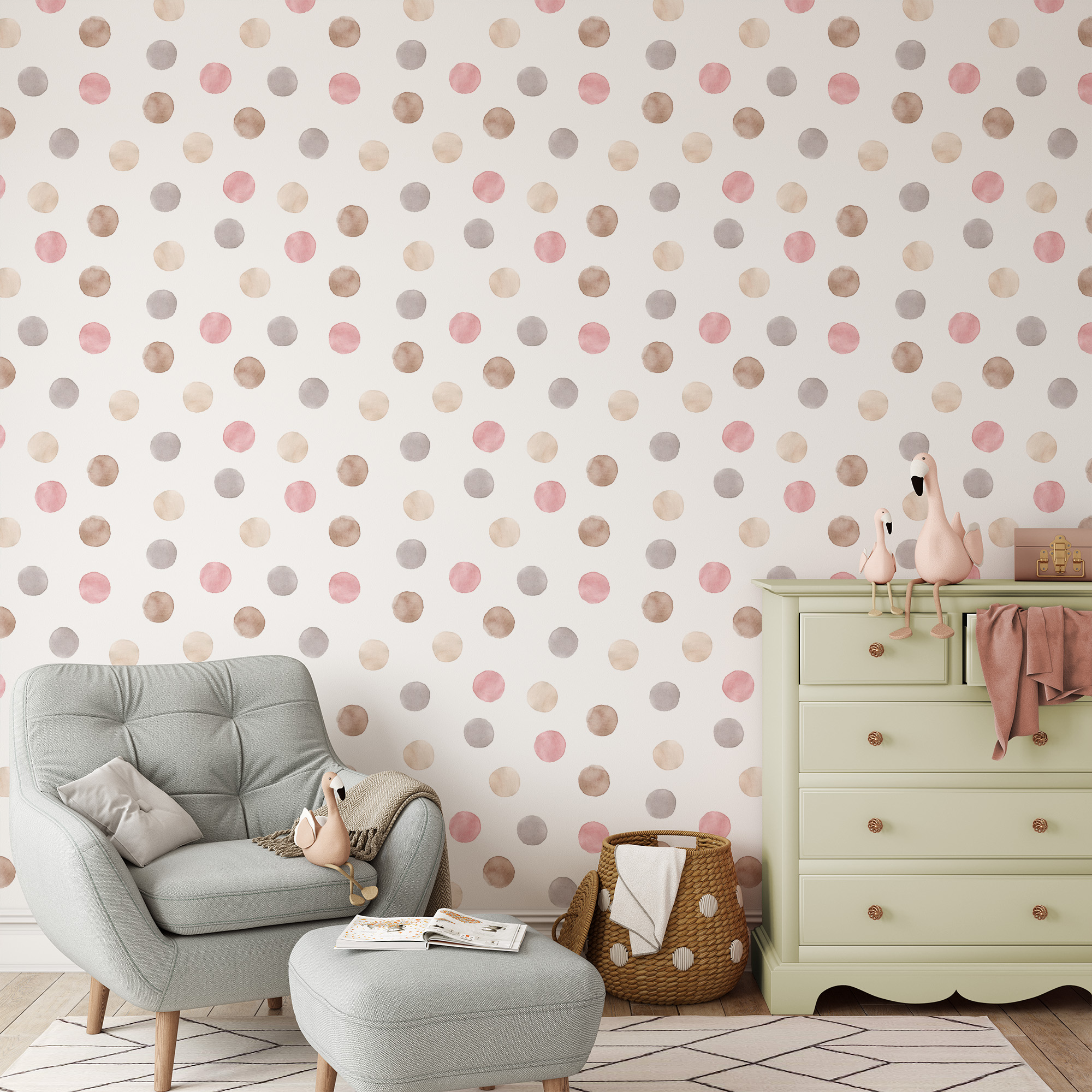 Earth Tone Watercolor Polka Dot Peel and Stick Wallpaper, Muted Pink and Grey Circle Wall Mural, Boho Minimalist Nursery Decor gmla-0011