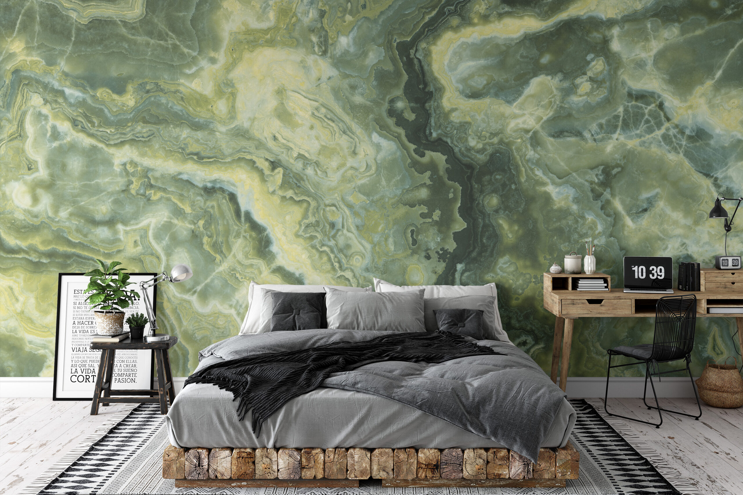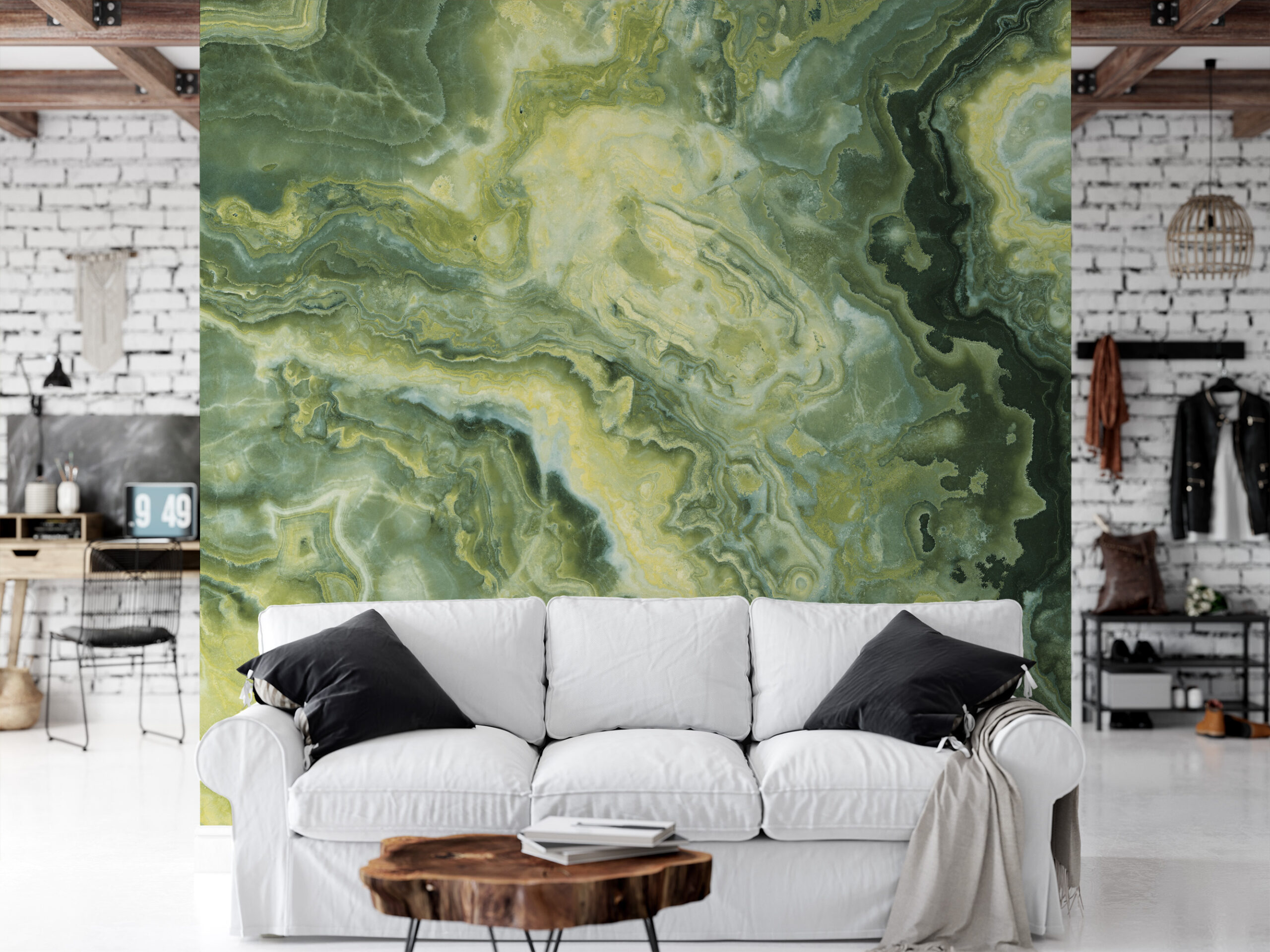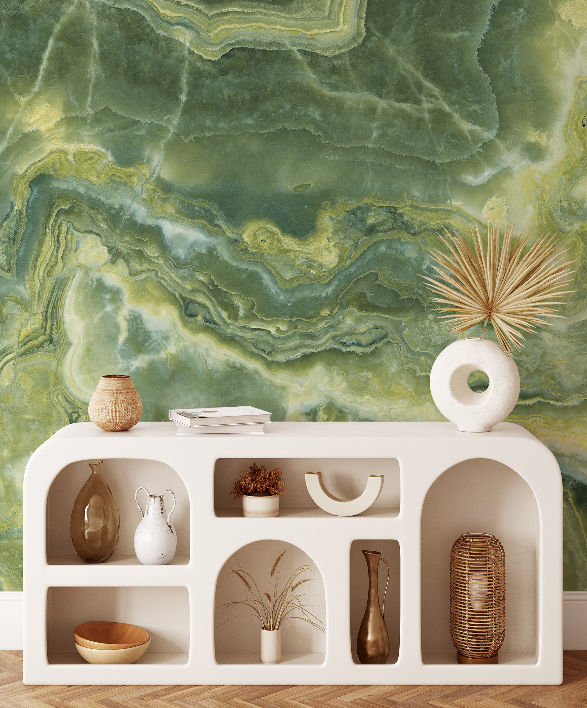Luxury Emerald Green Onyx Marble Peel and Stick Wallpaper, Large Scale Faux Stone Wall Mural, Modern Nature Inspired Decor marb-0012