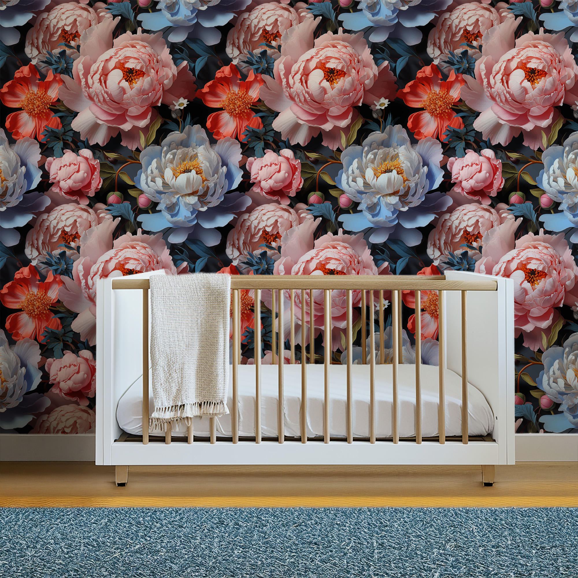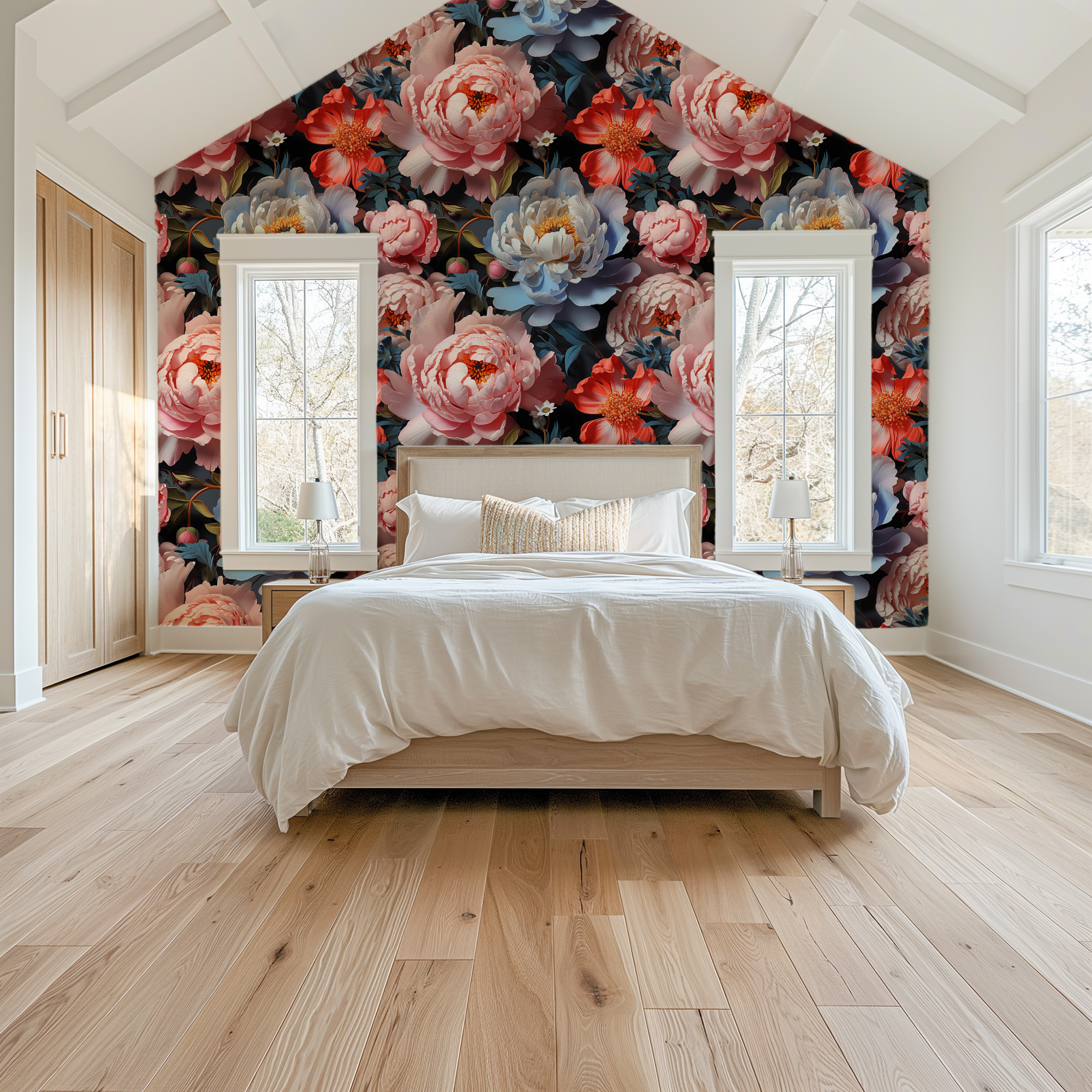 Unlike traditional rolled wallpapers with small and repetitive patterns, we produce wallpapers with large patterns according to your exact wall size.