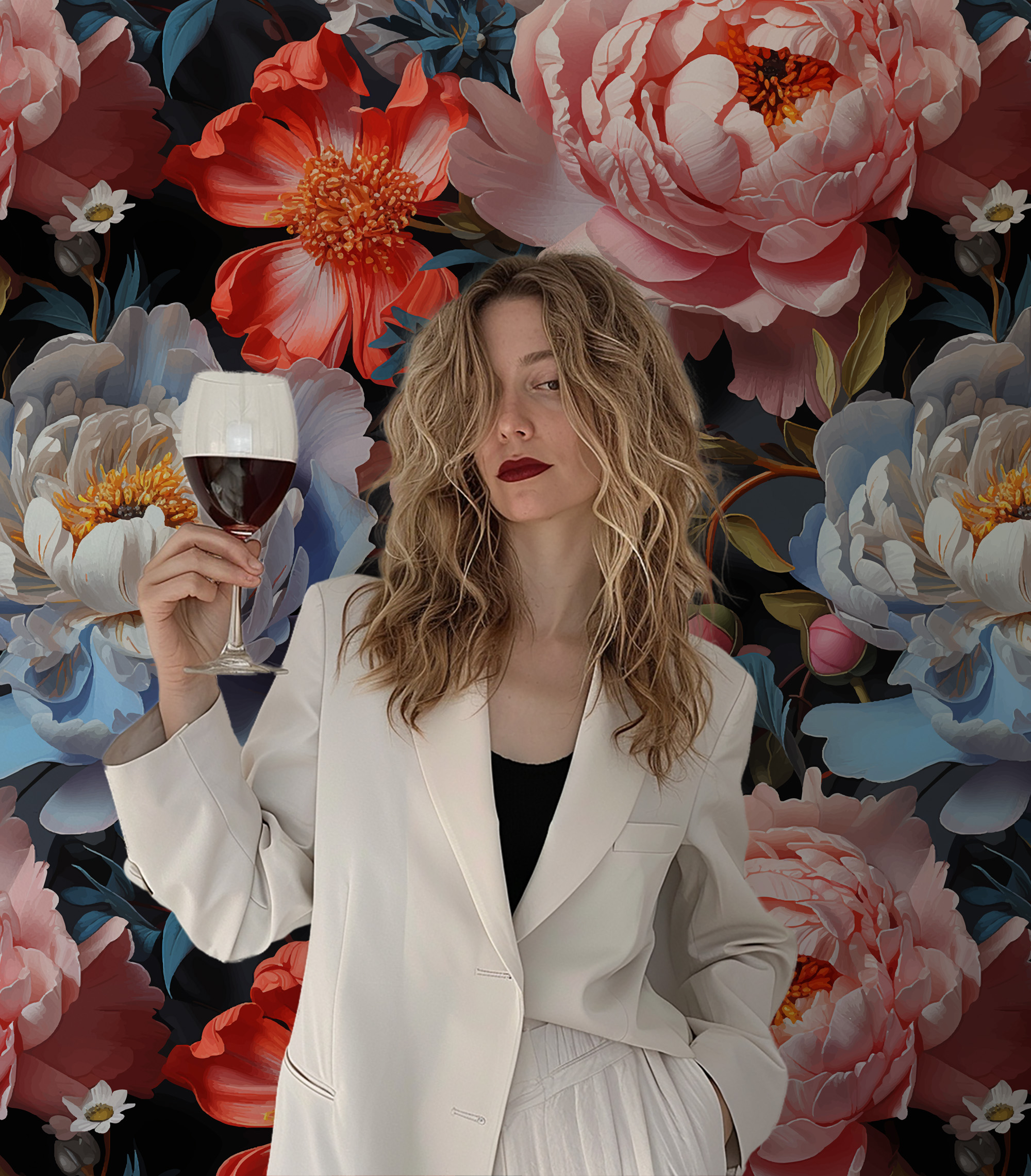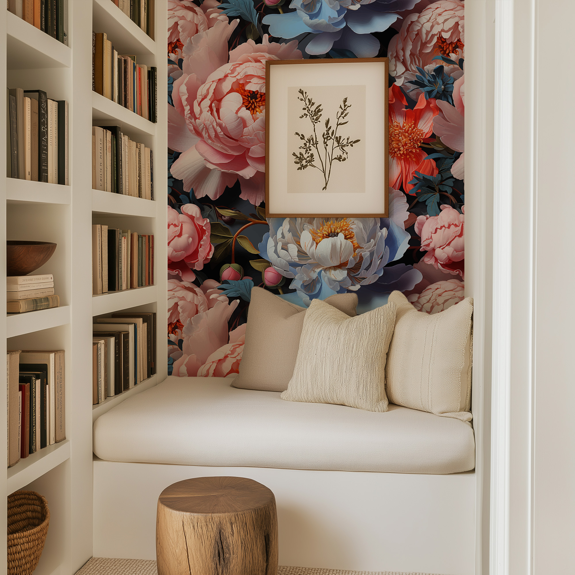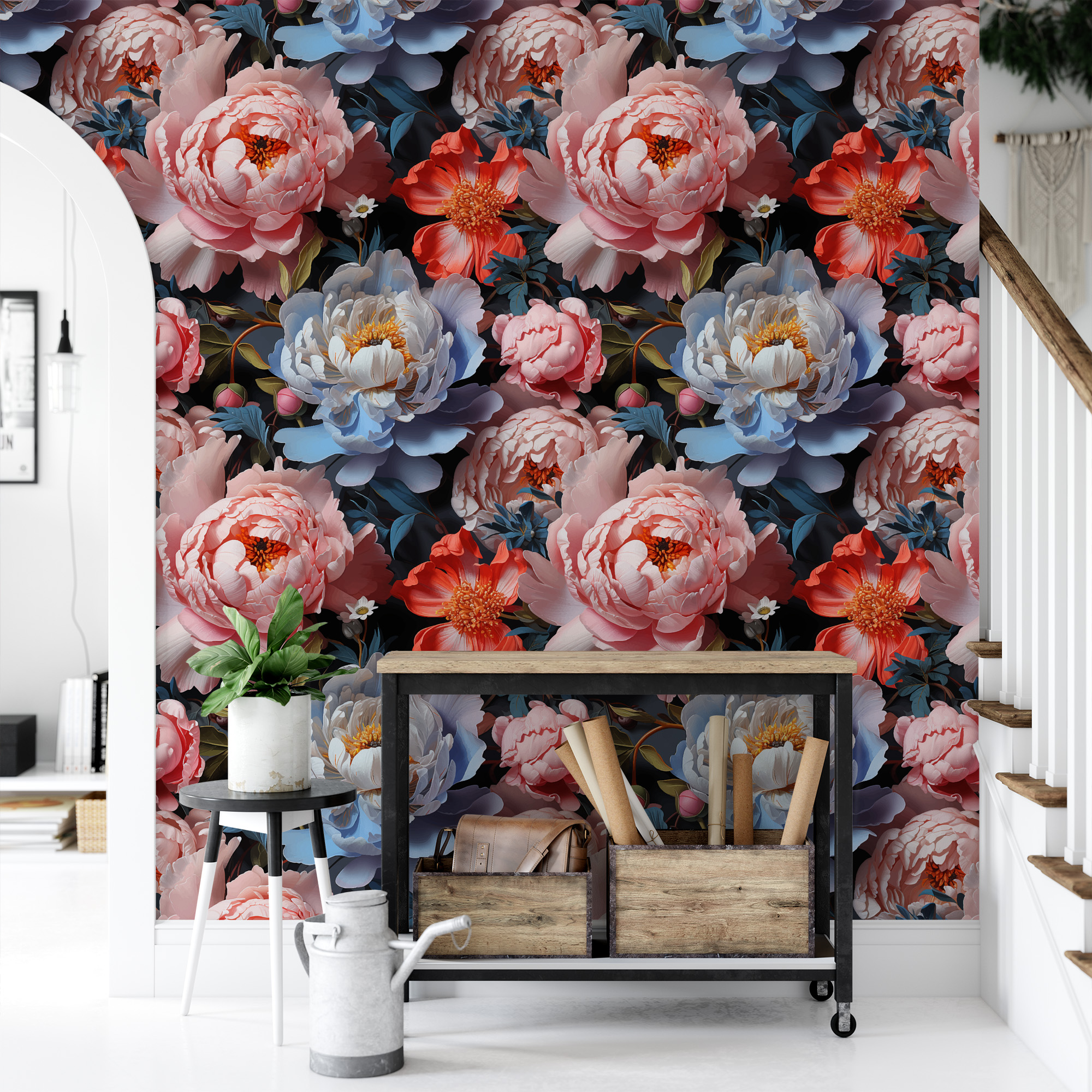 Maximalist Moody Pink and Orange Peony Peel and Stick Wallpaper, Bold Large Scale Floral Wall Mural, Dark Contemporary Flower Decor flrl-0054