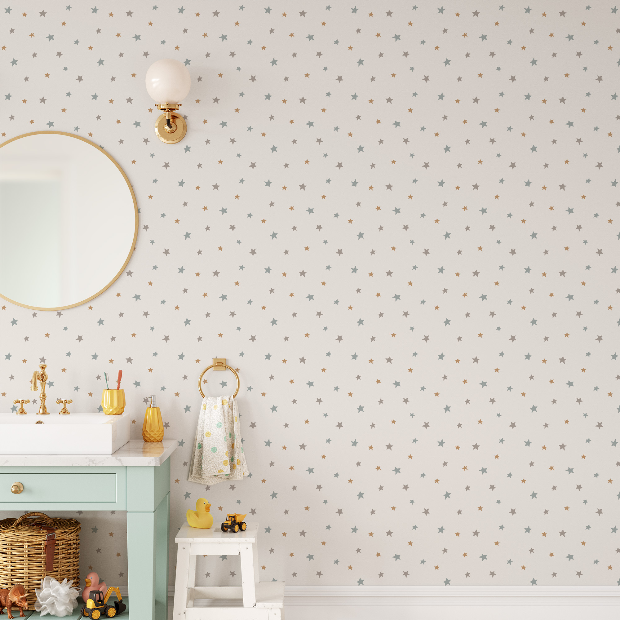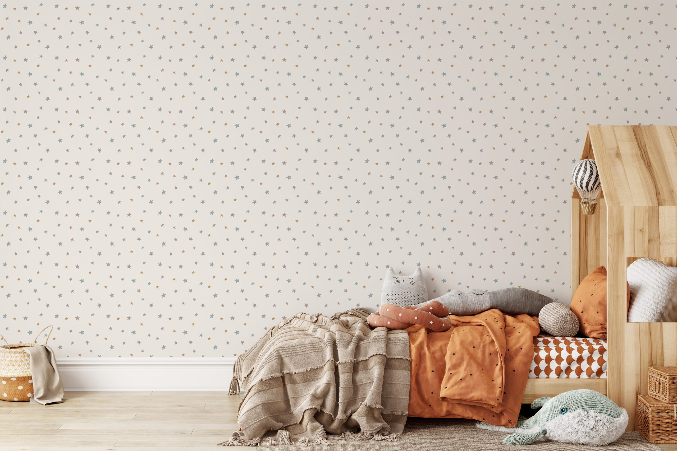 Minimalist Scattered Star Kids Peel and Stick Wallpaper, Neutral Scandi Nursery Wall Mural, Starry Night Decor kids-0042