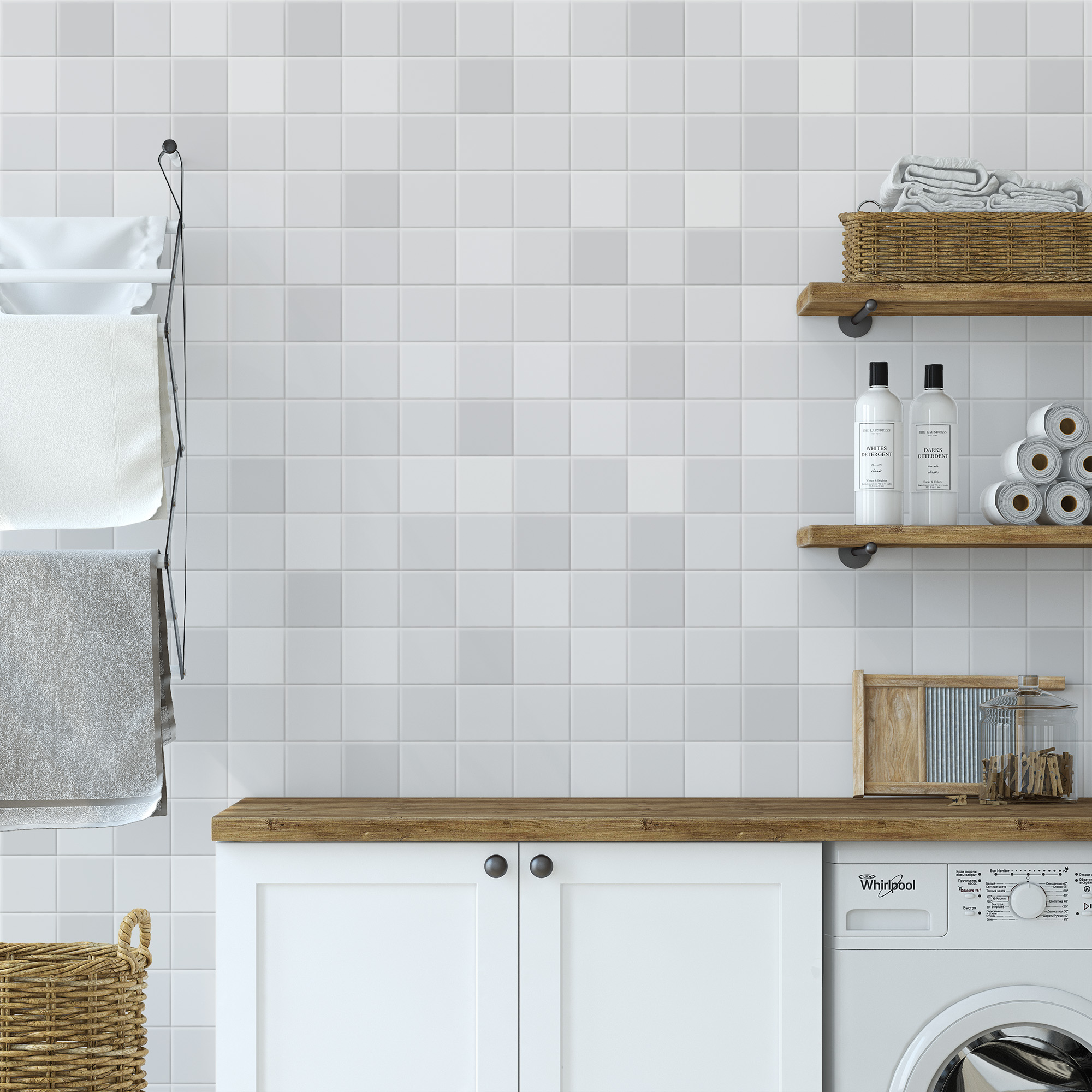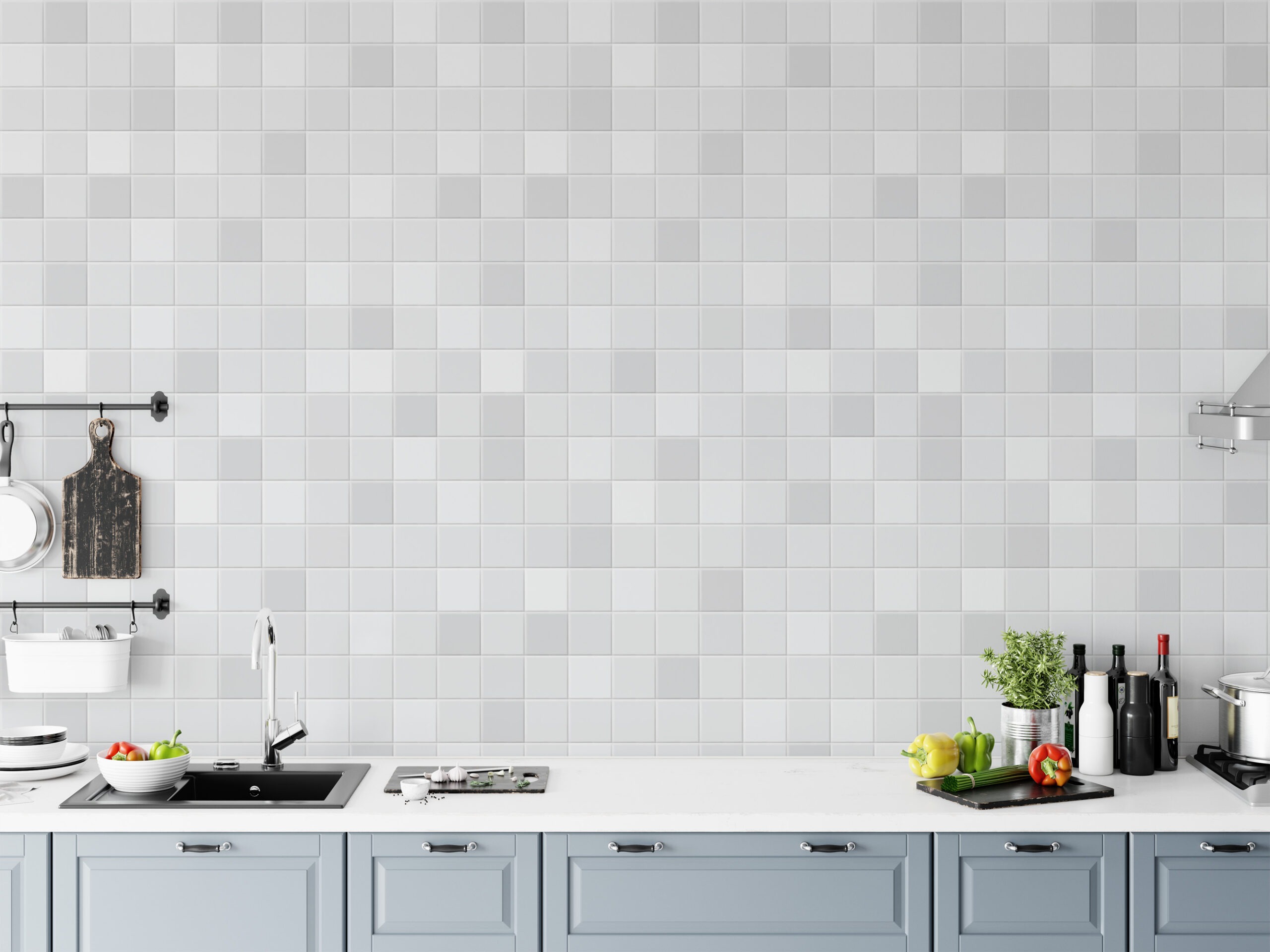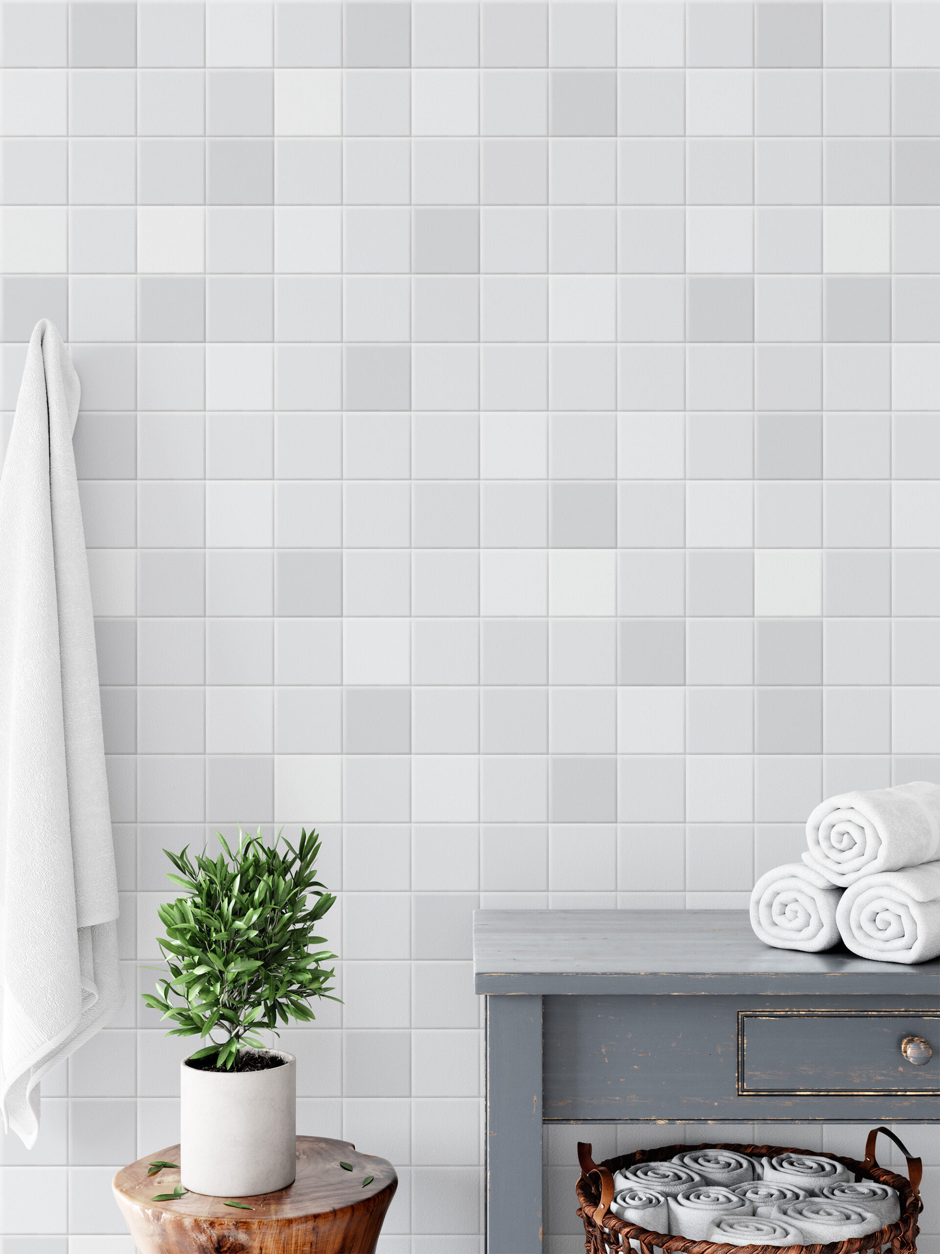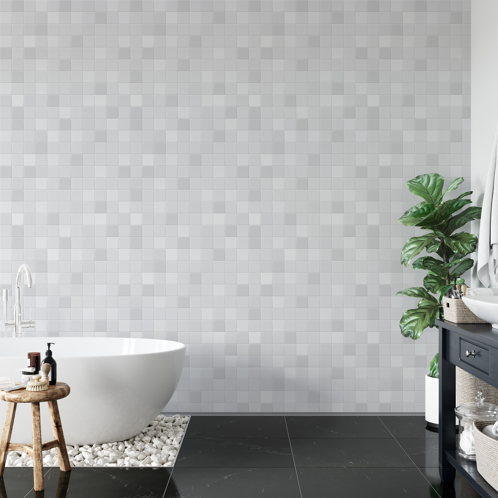 Minimalist White and Grey Mosaic Tile Peel and Stick Wallpaper, Modern Grid Pattern Wall Mural, Clean Scandinavian Bathroom Decor gmla-0026