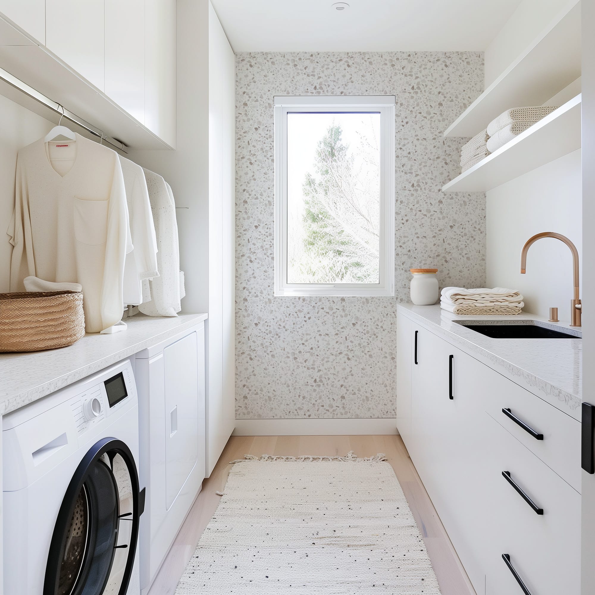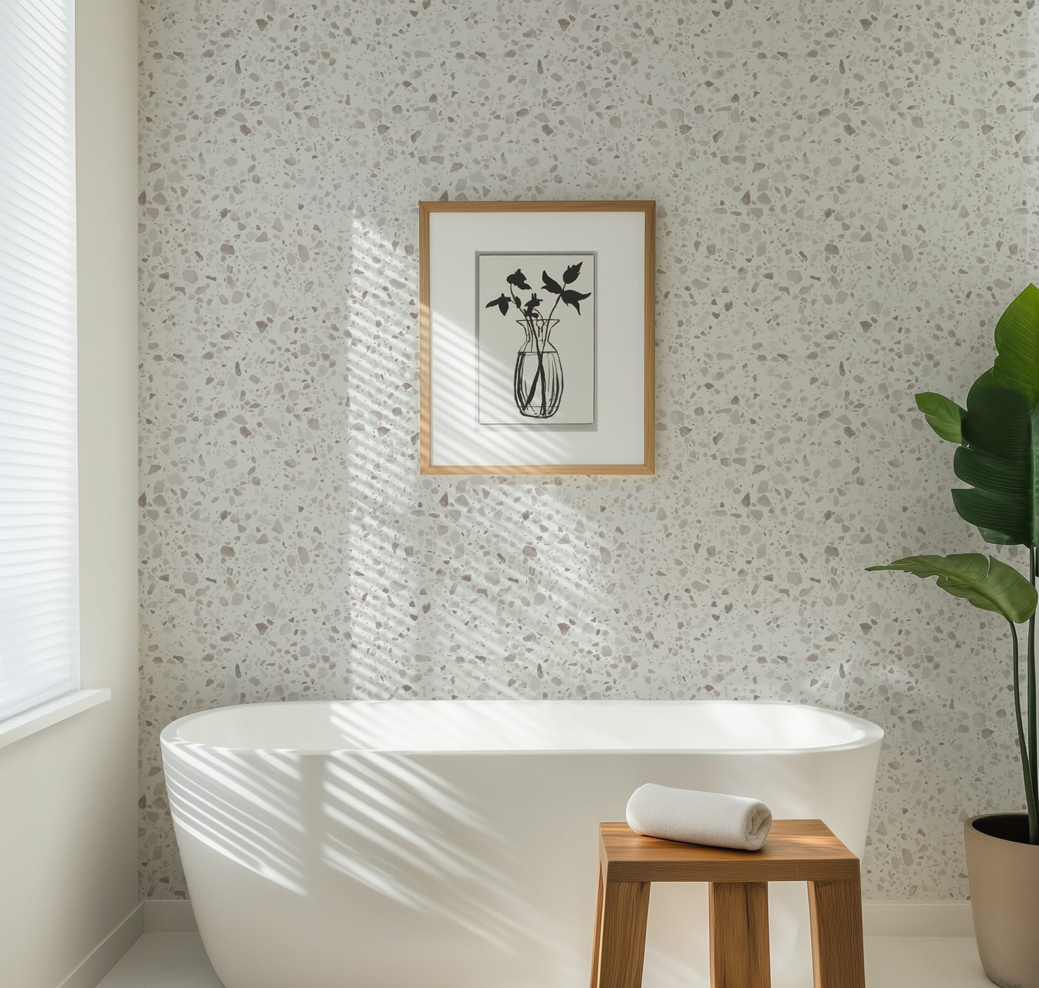 Minimalist White Terrazzo Peel and Stick Wallpaper, Grey Speckled Wall Mural, Neutral Stone Texture Wallpaper abst-0002