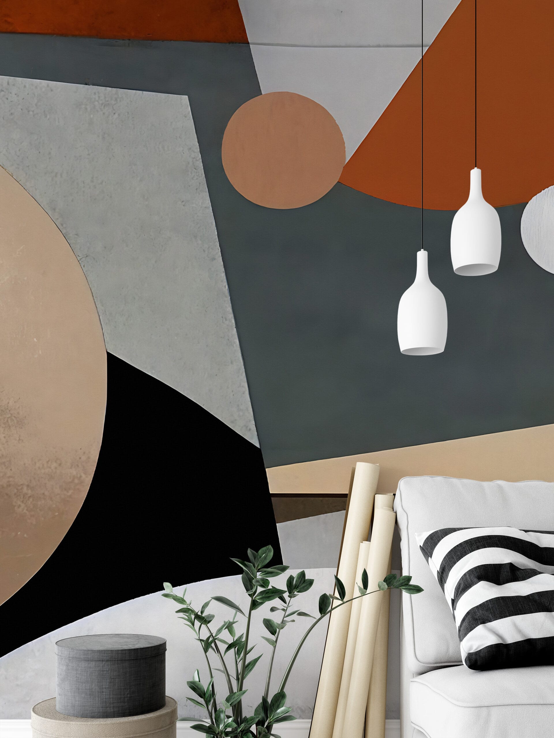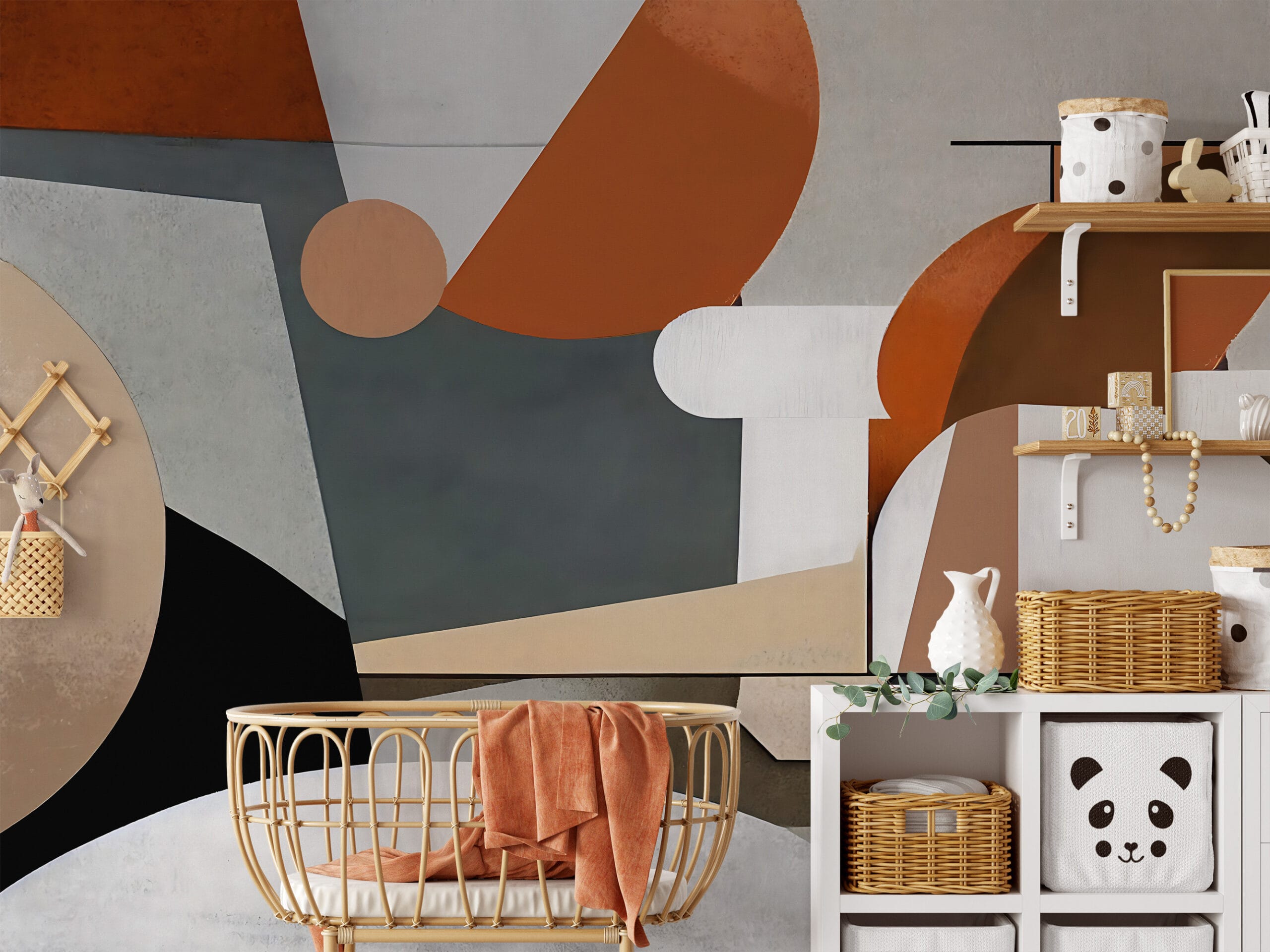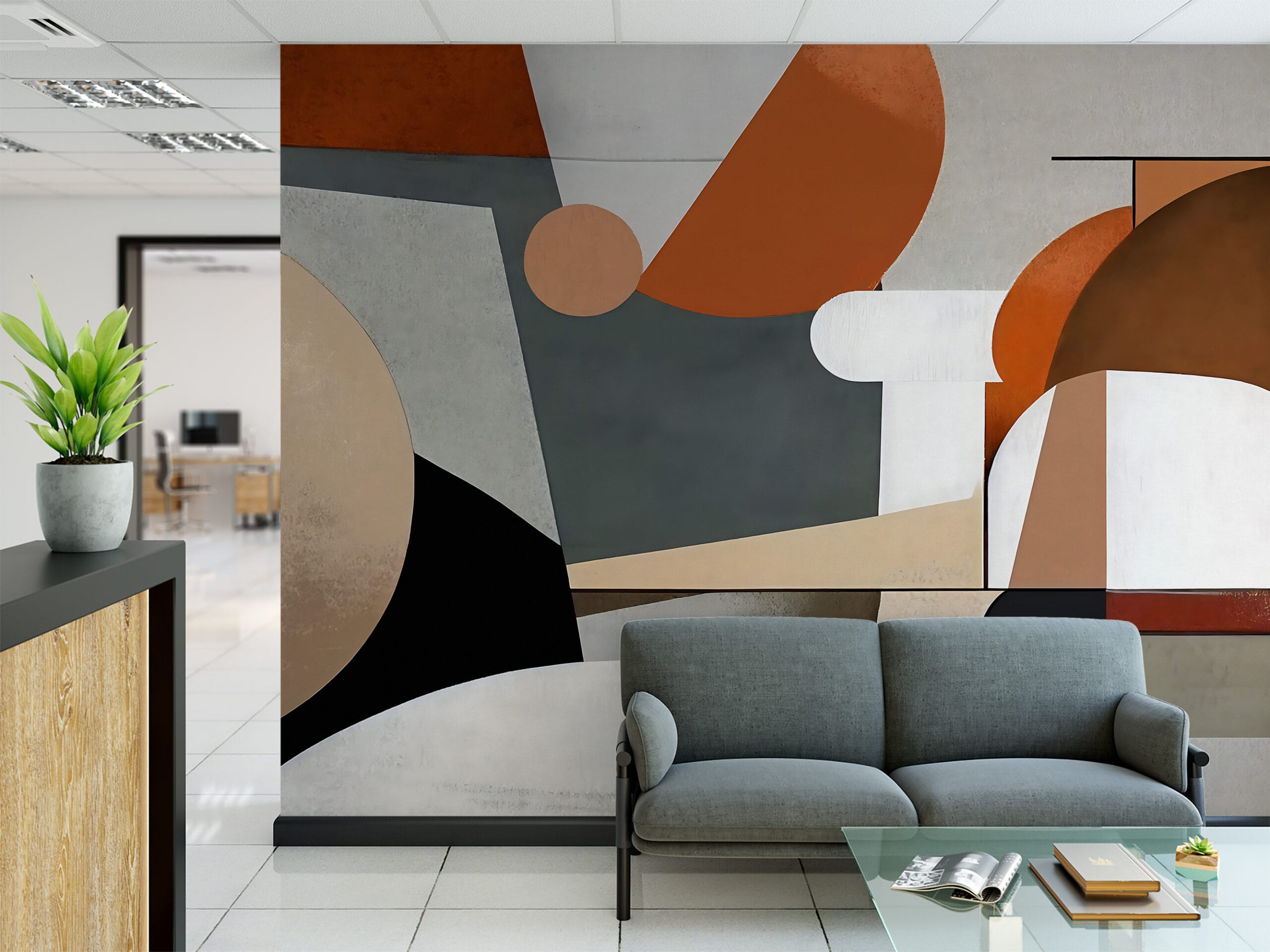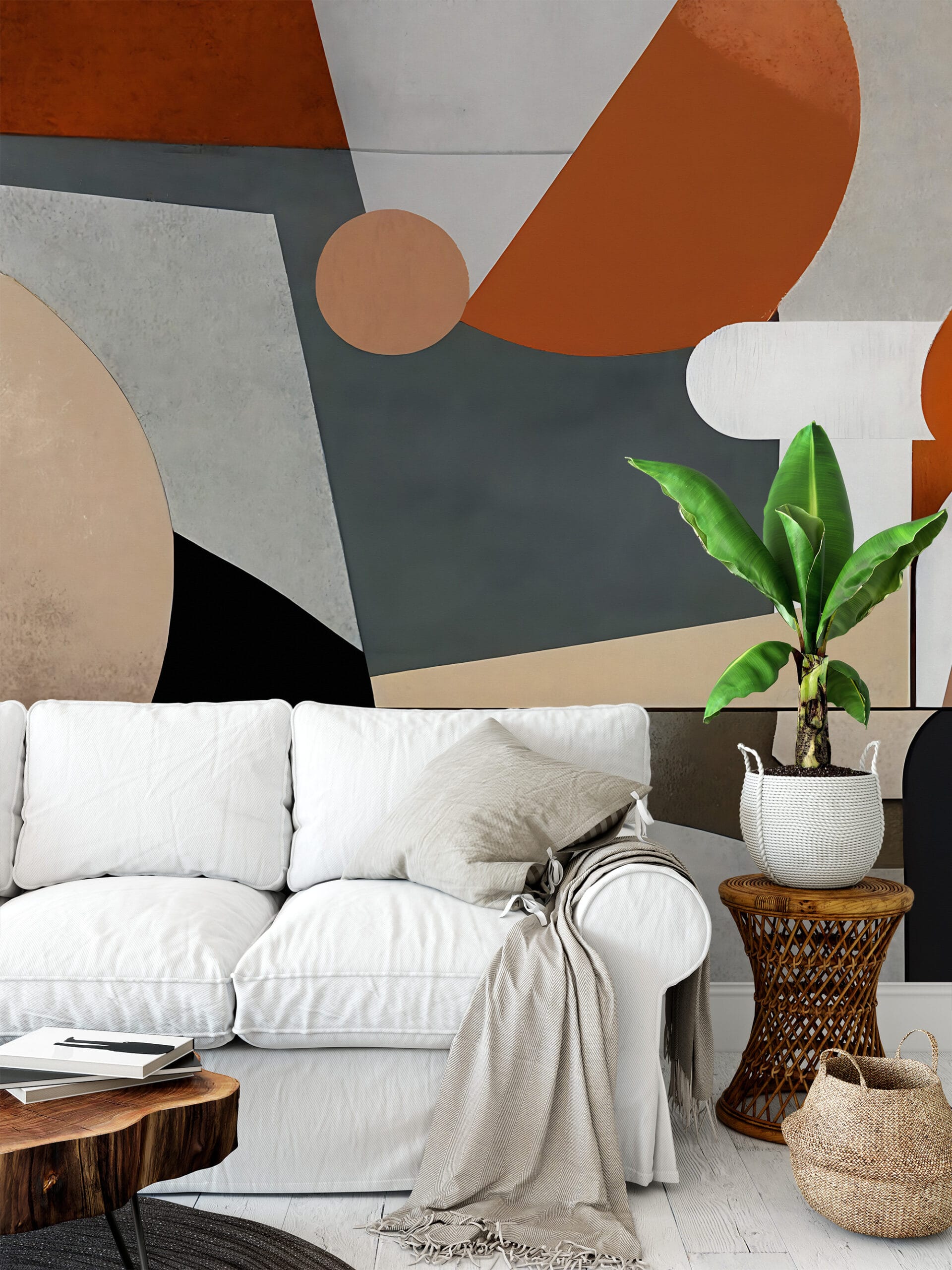 Modern Abstract Geometric Wall Mural, Terracotta and Grey Peel & Stick Wallpaper, Contemporary Shapes Self Adhesive Wallpaper abst-0019