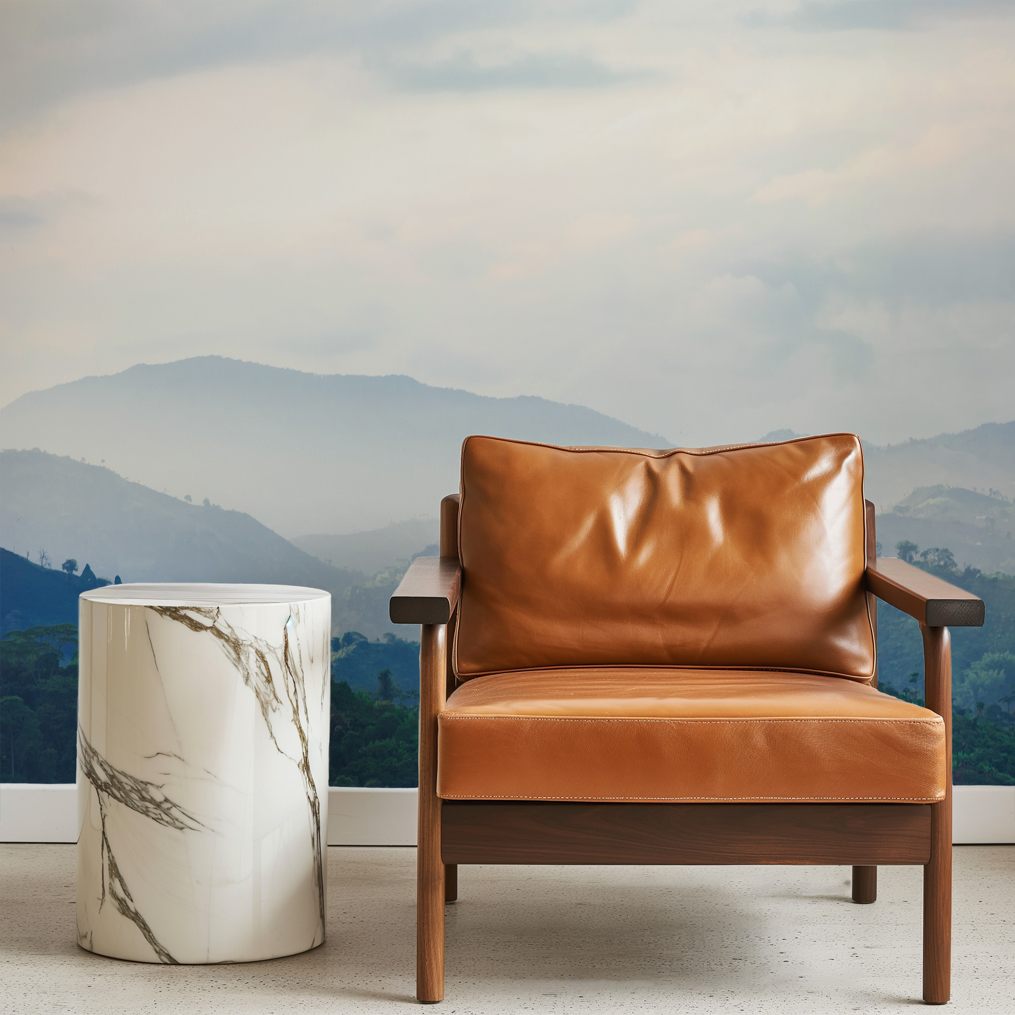 Modern Green Mountain Landscape Nature Peel and Stick Wallpaper, Misty Rolling Hills Wall Mural ntrs-0001