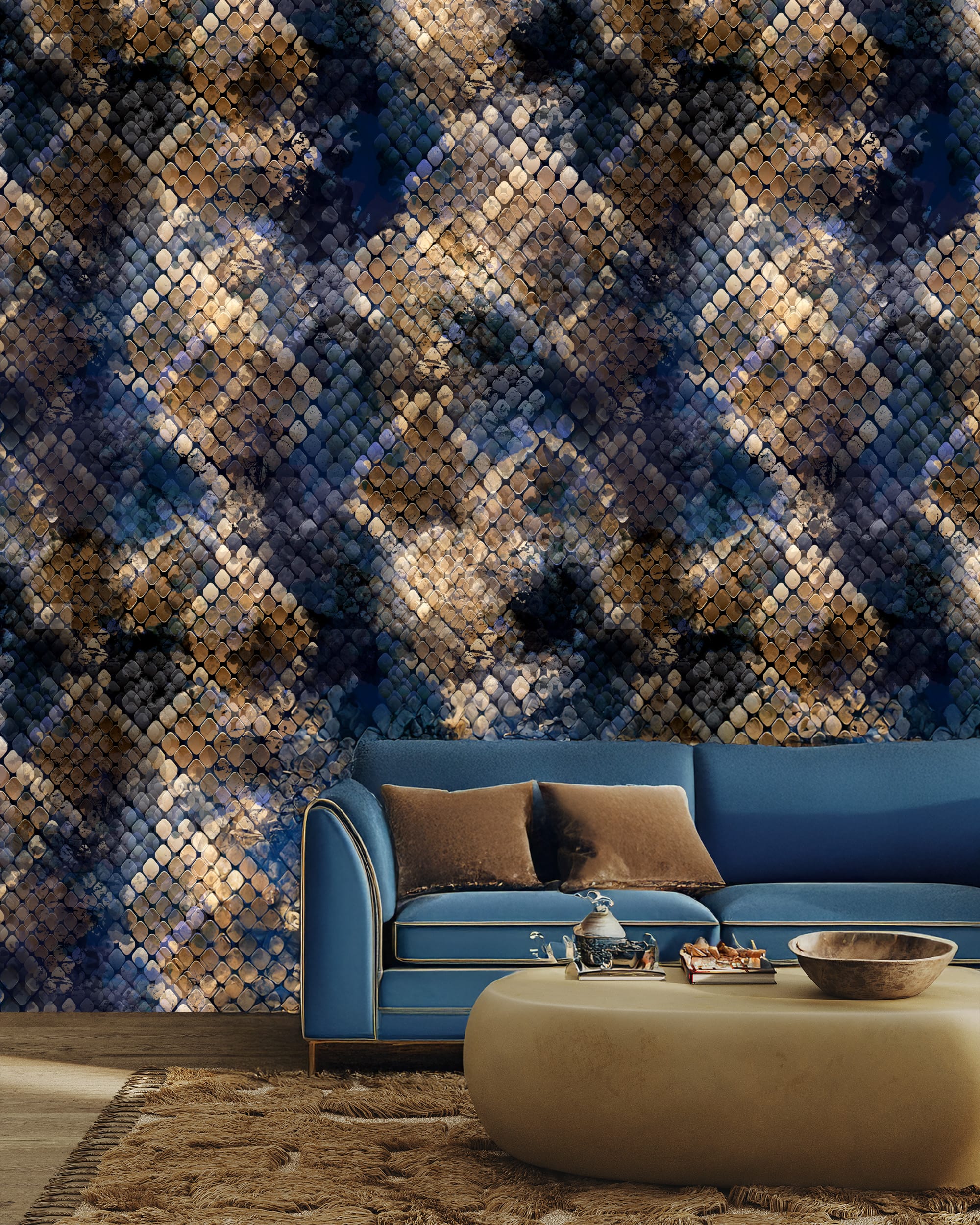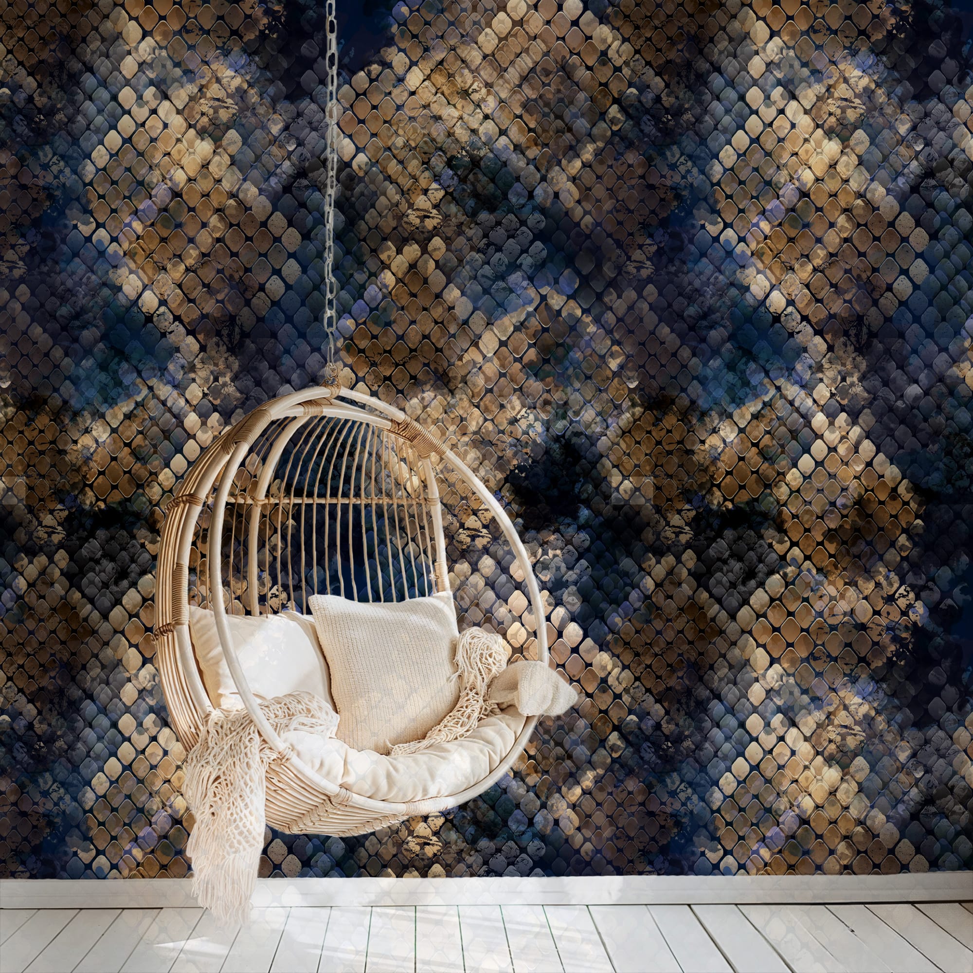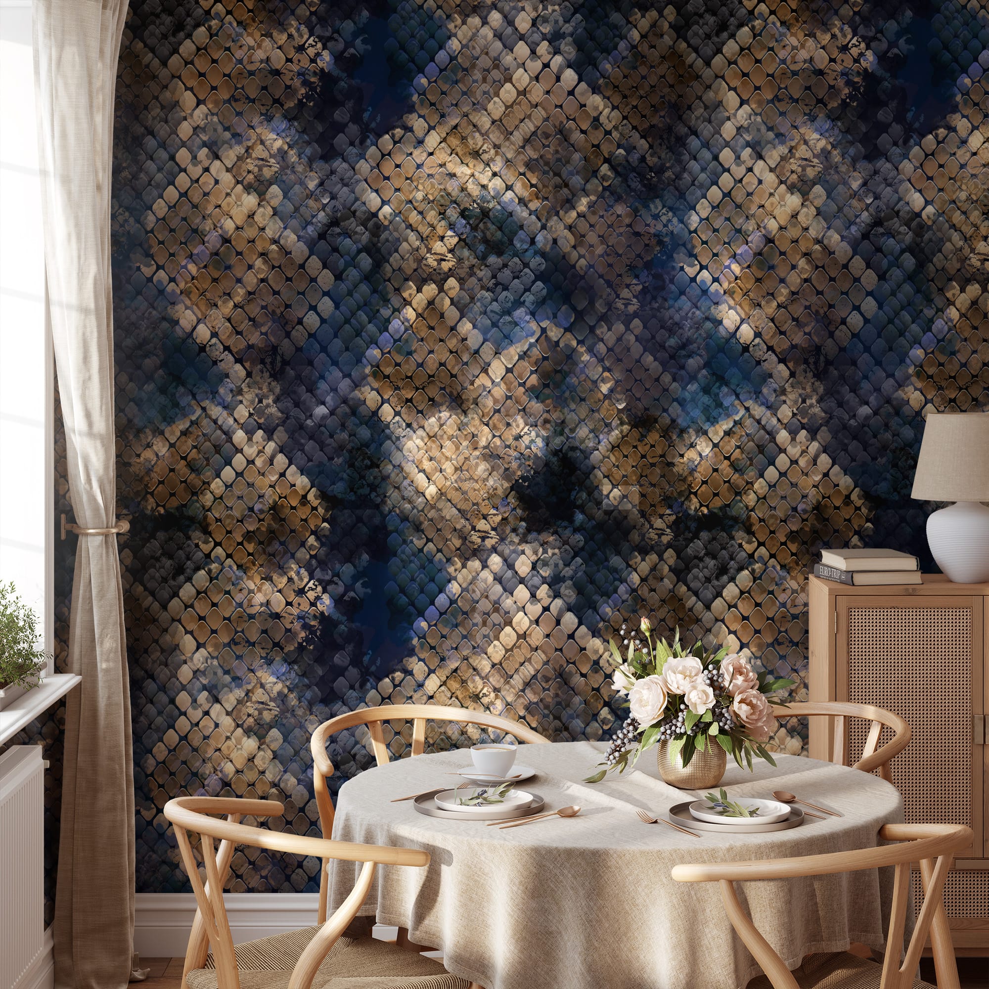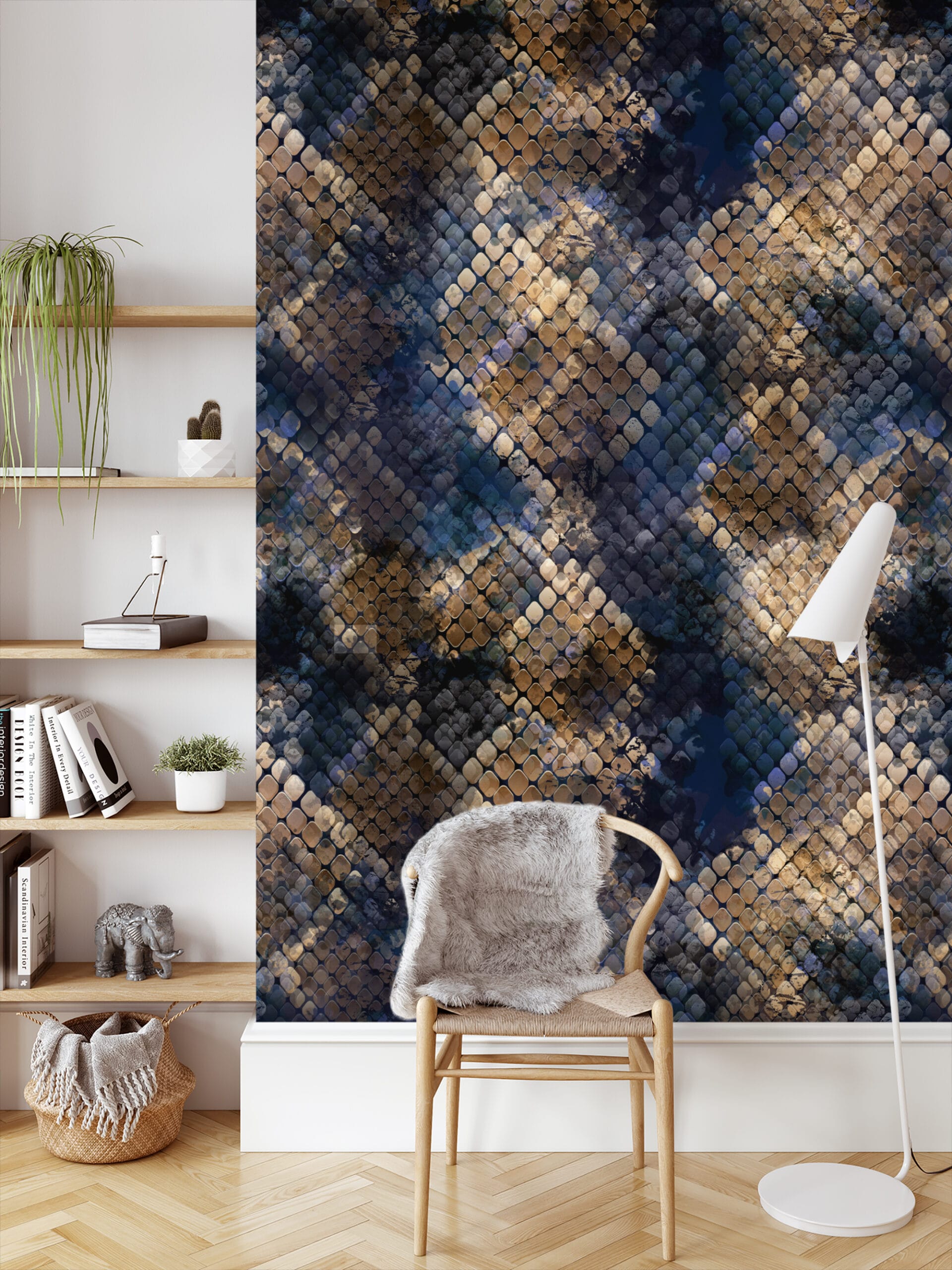 Modern Navy and Brown Snakeskin Peel and Stick Wallpaper, Faux Texture Reptile Scale Wall Mural, Contemporary Abstract Animal Print Wallpaper anml-0032