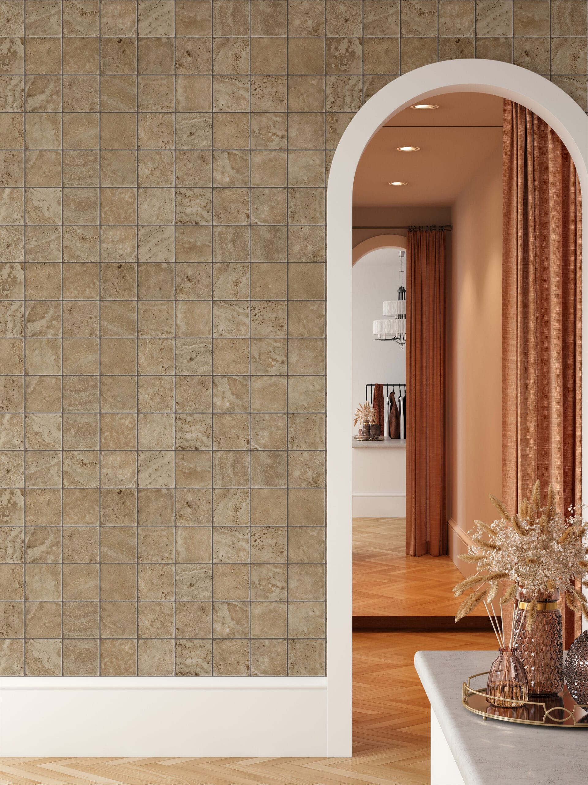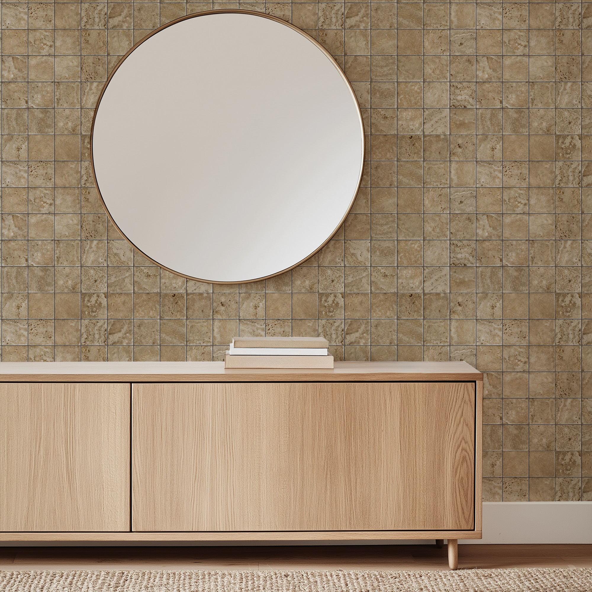 Natural Beige Travertine Tile Peel and Stick Wallpaper, Rustic Stone Faux Texture Wall Mural, Classic Neutral Removable Wallpaper faux-0006