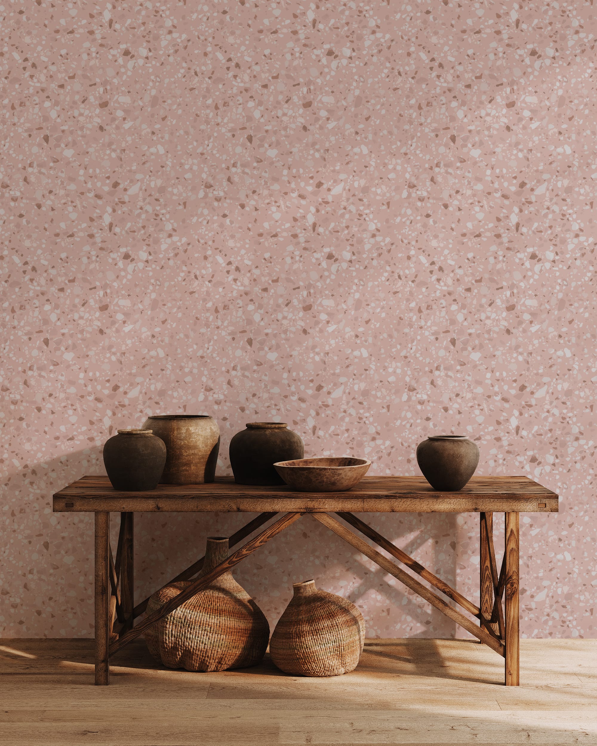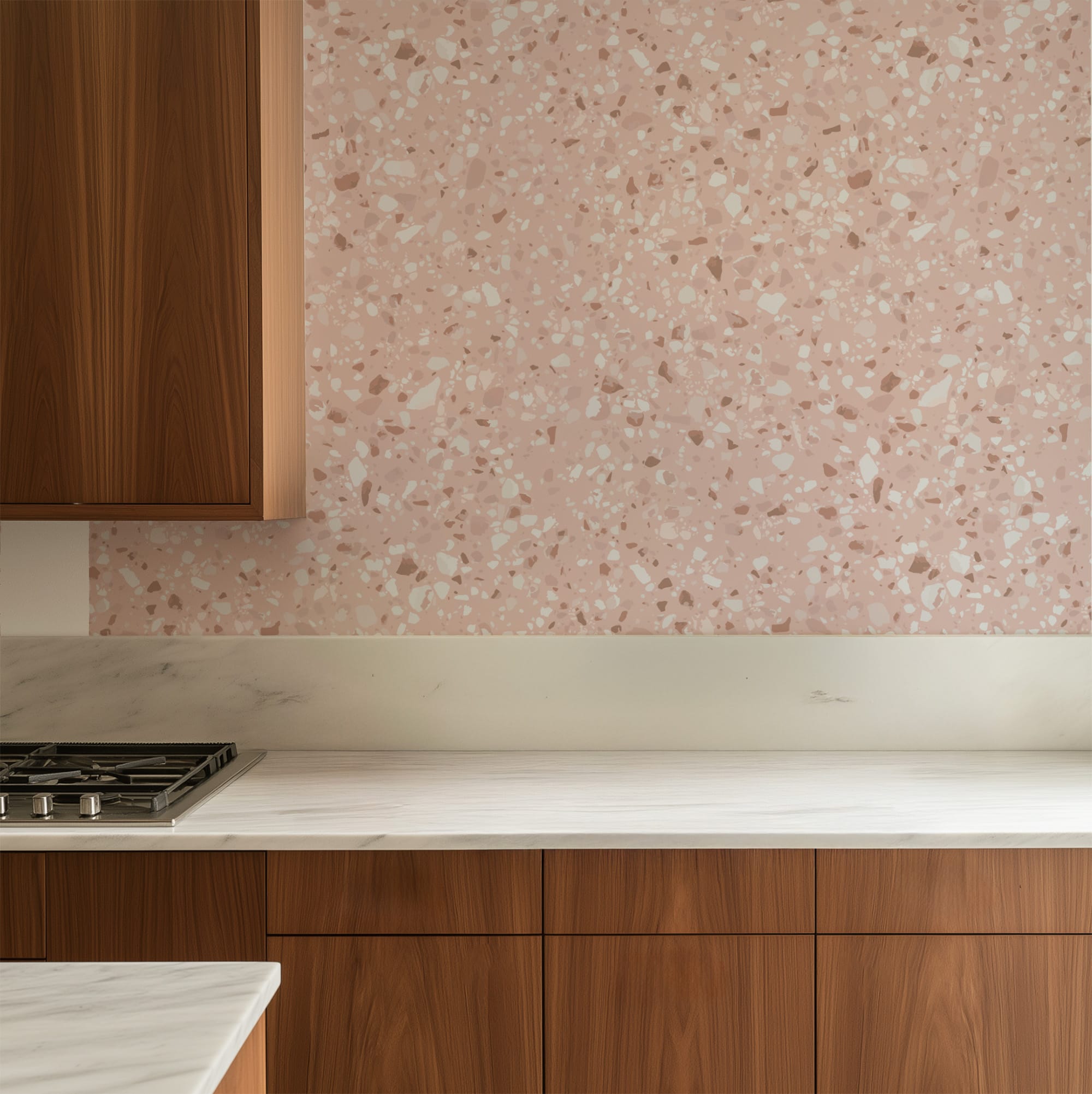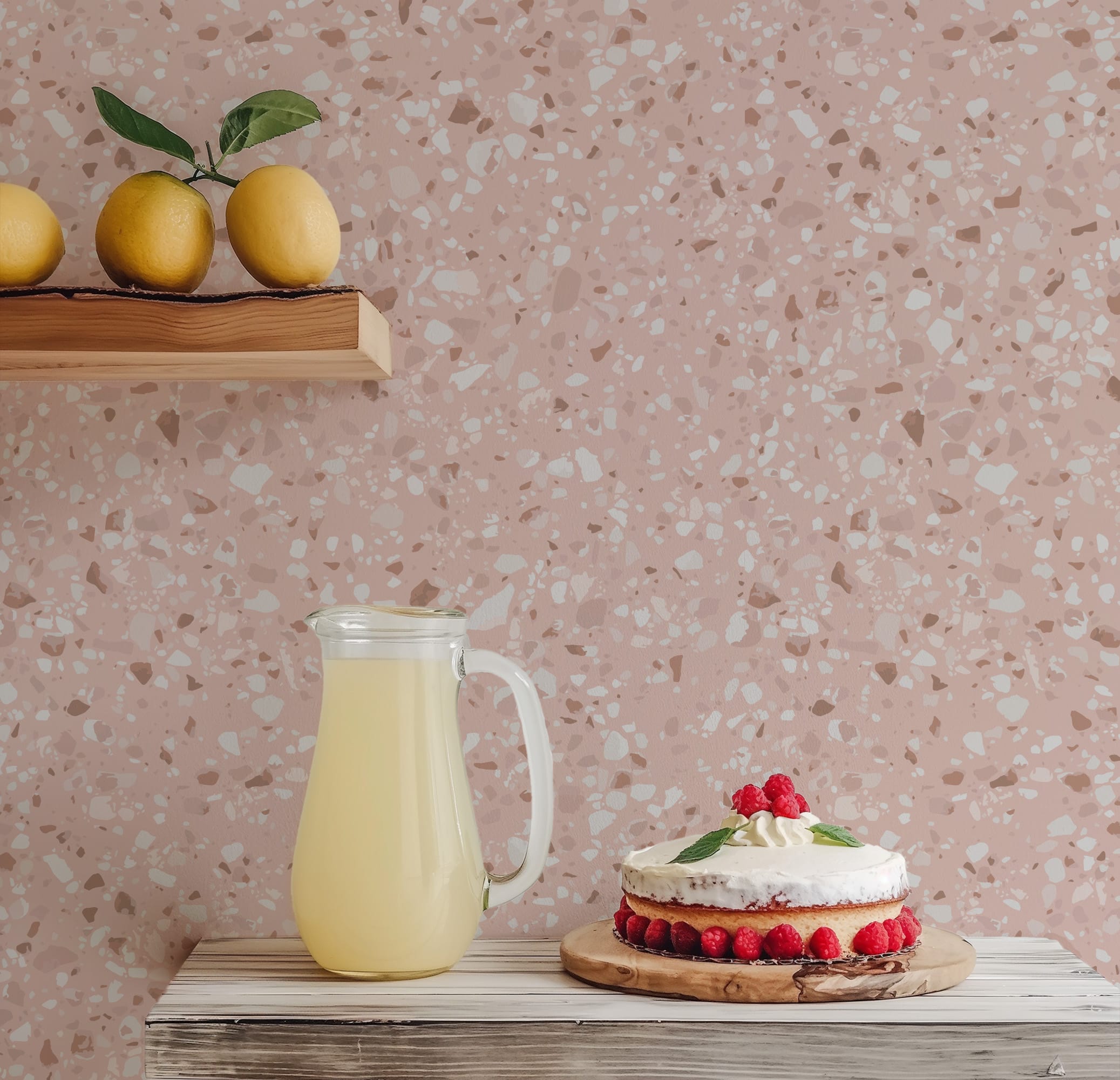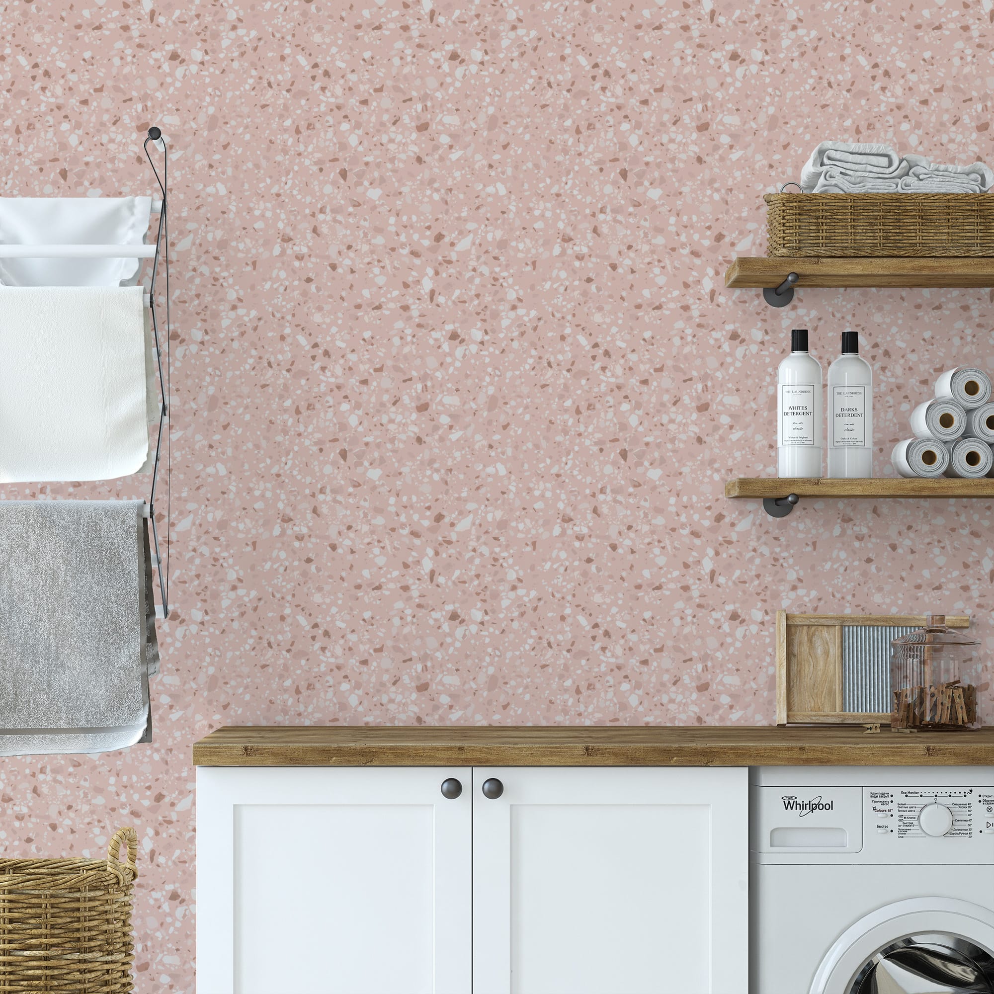 Soft Pink Terrazzo Peel and Stick Wallpaper, Modern Faux Stone Wall Mural, Chic Speckled Self Adhesive Wallpaper abst-0001