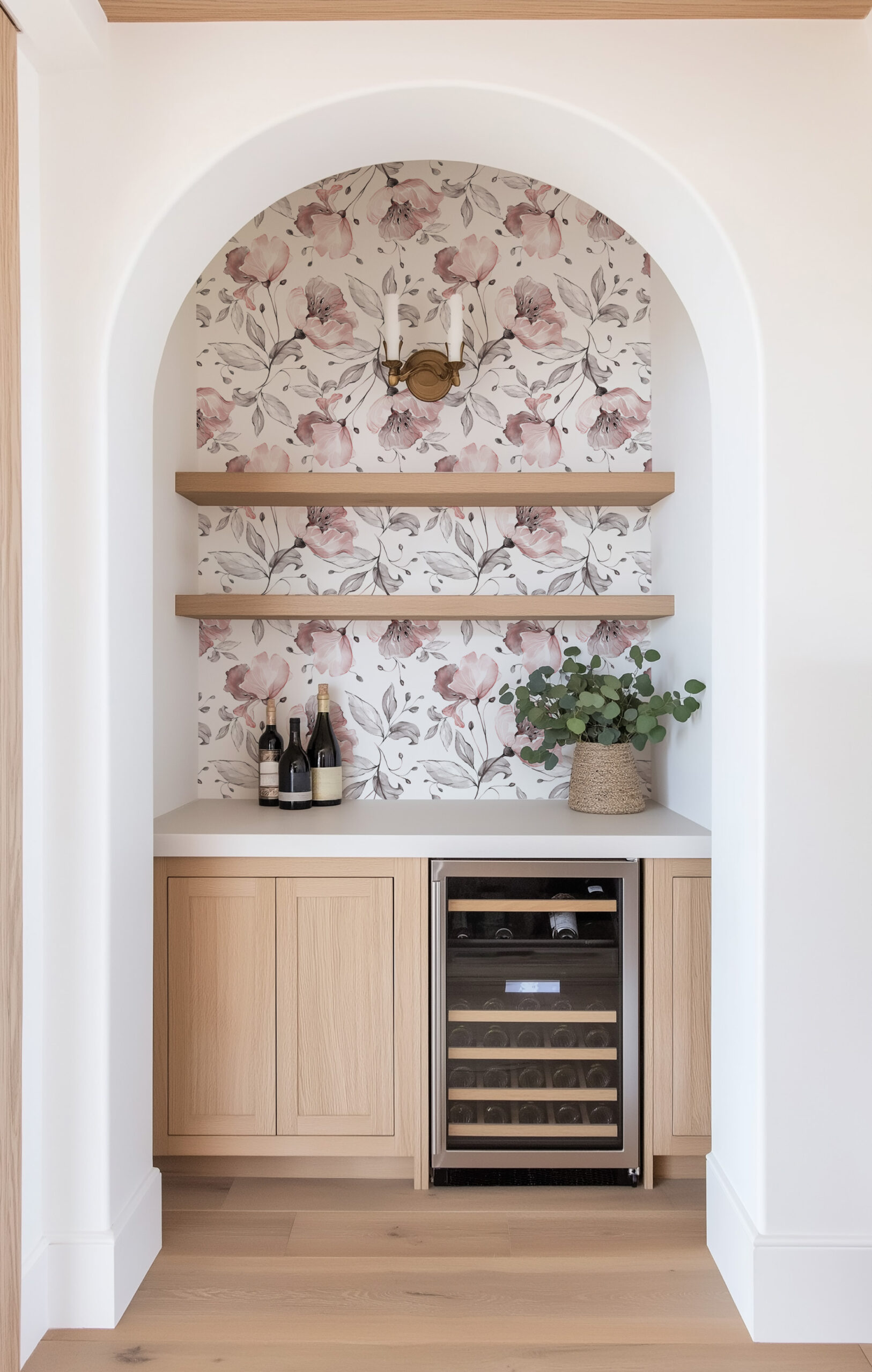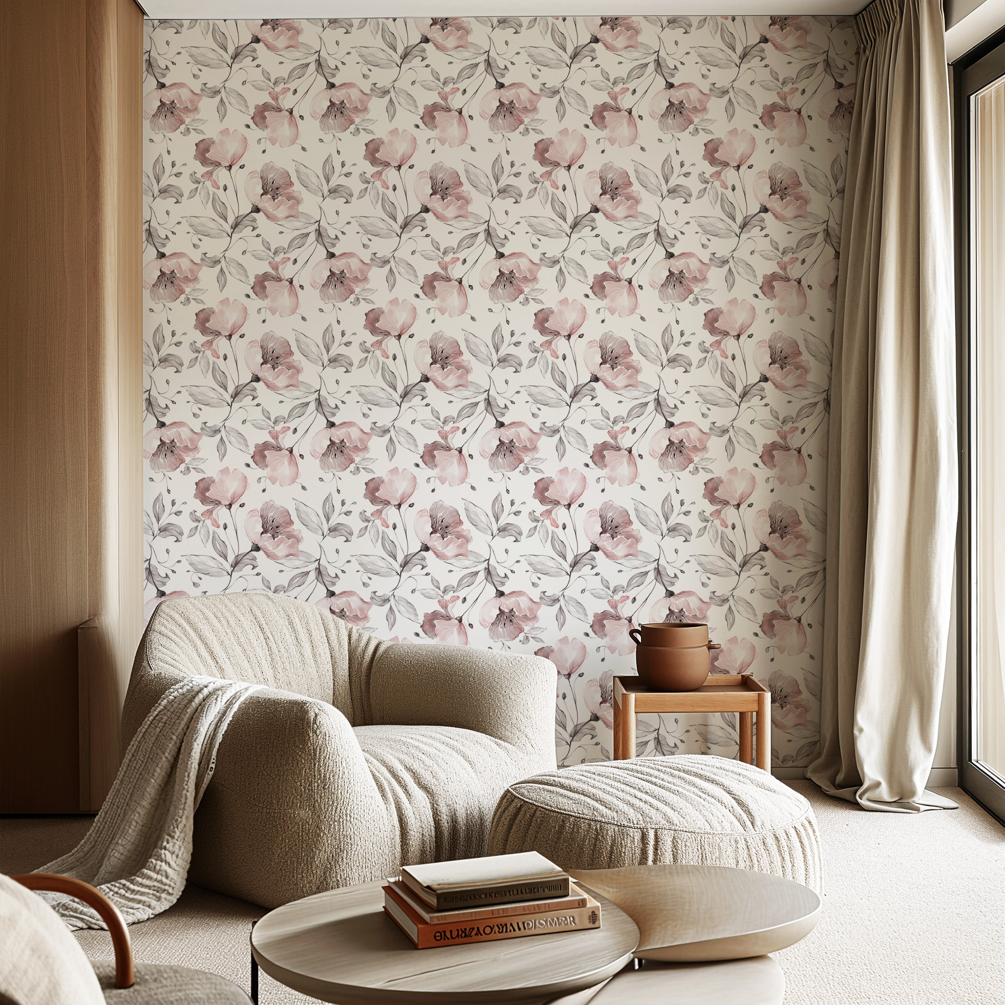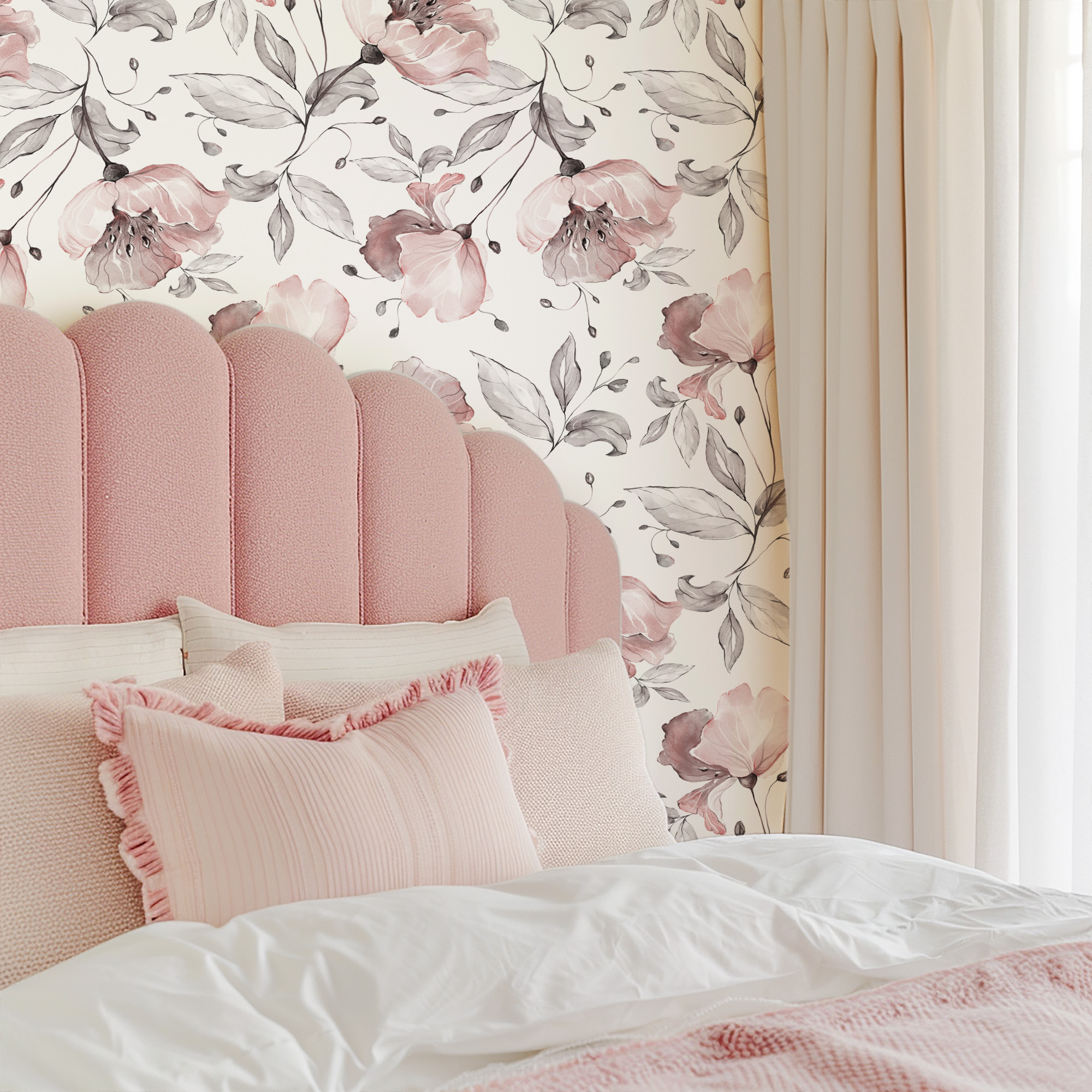 Soft Watercolor Pink Floral Peel and Stick Wallpaper, Elegant Dusty Rose Botanical Wall Mural, Delicate Flower Removable Wall Decor flrl-0005
