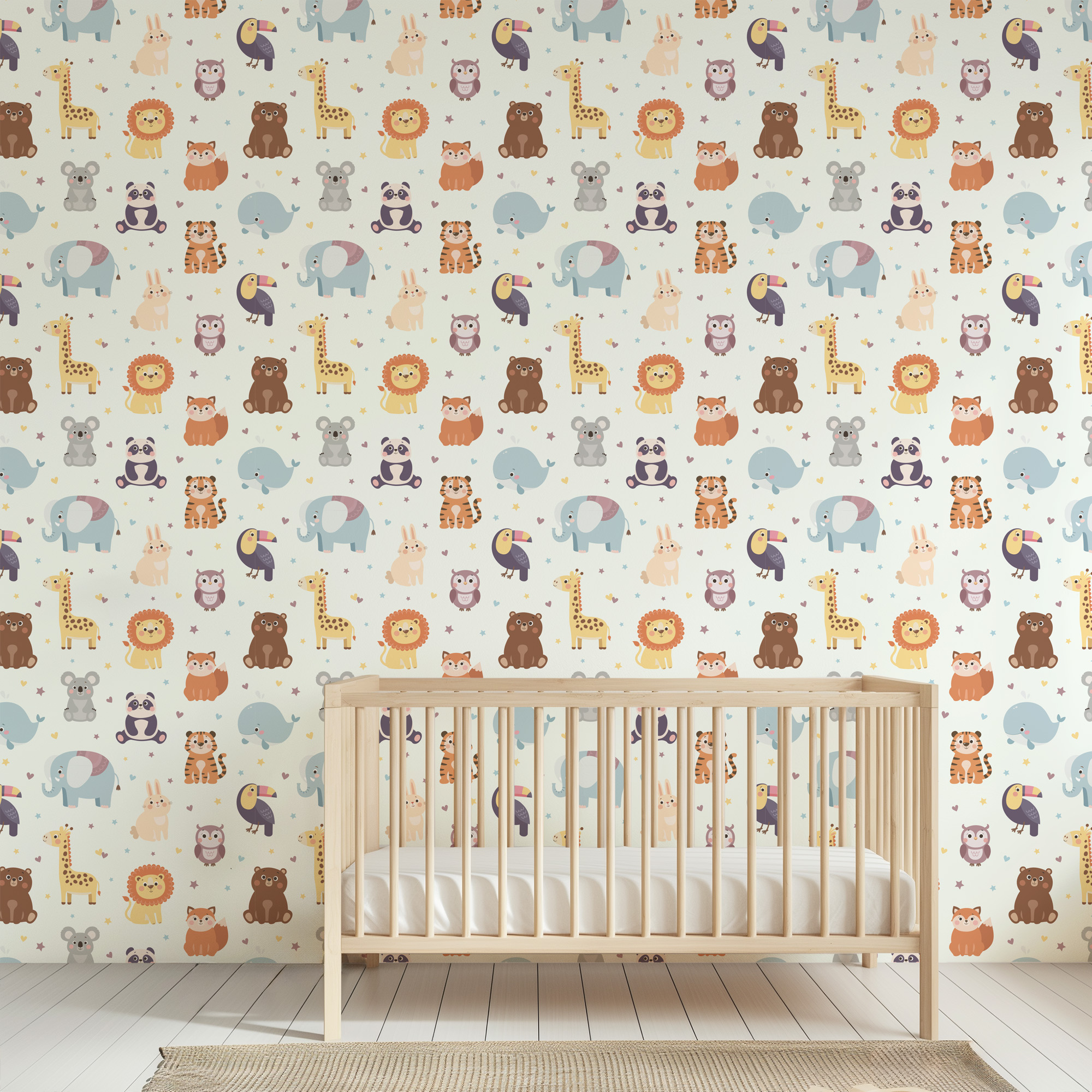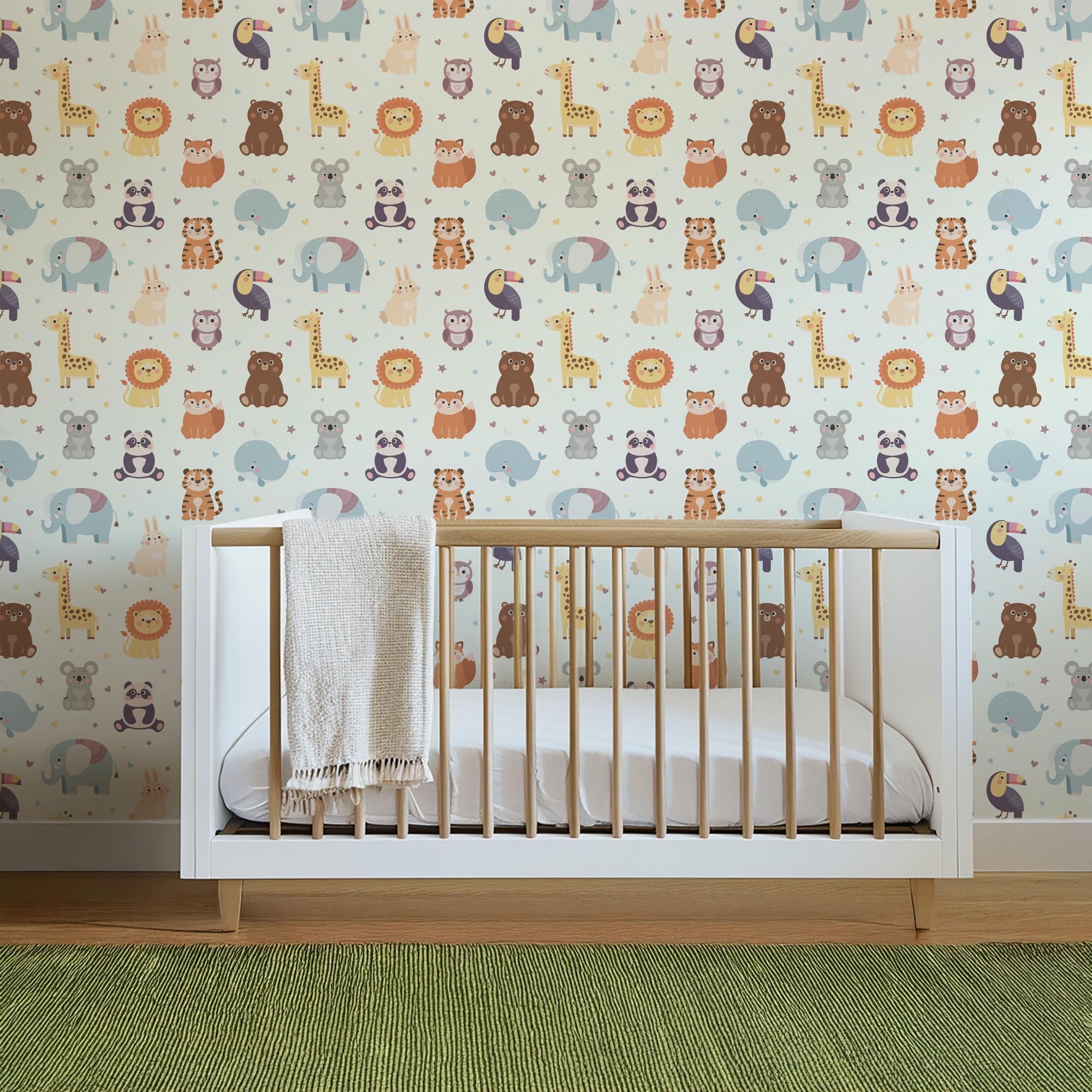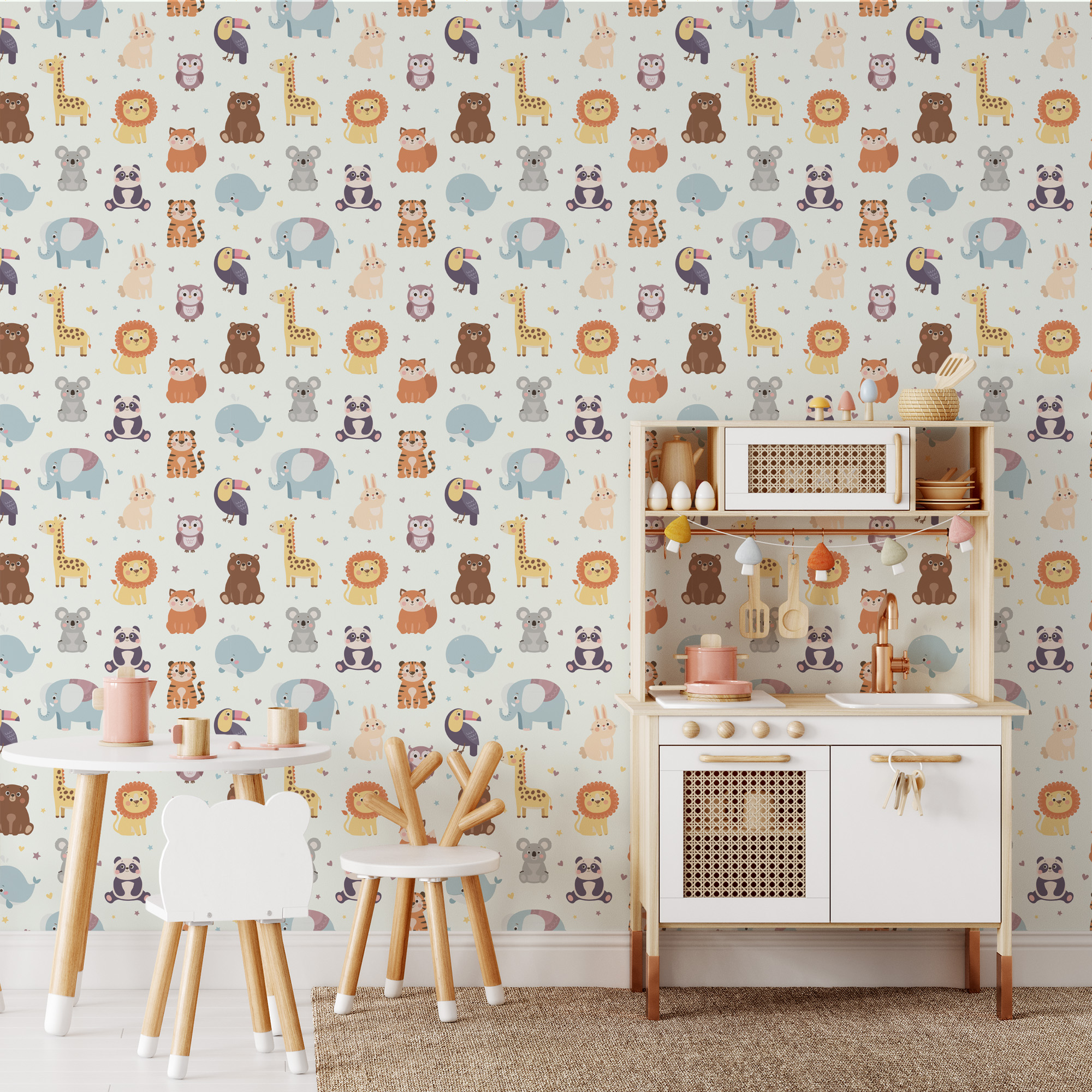 Sweet Safari Friends Kids Peel and Stick Wallpaper, Mint Green Animal Nursery Wall Mural, Playful Zoo Decor kids-0017