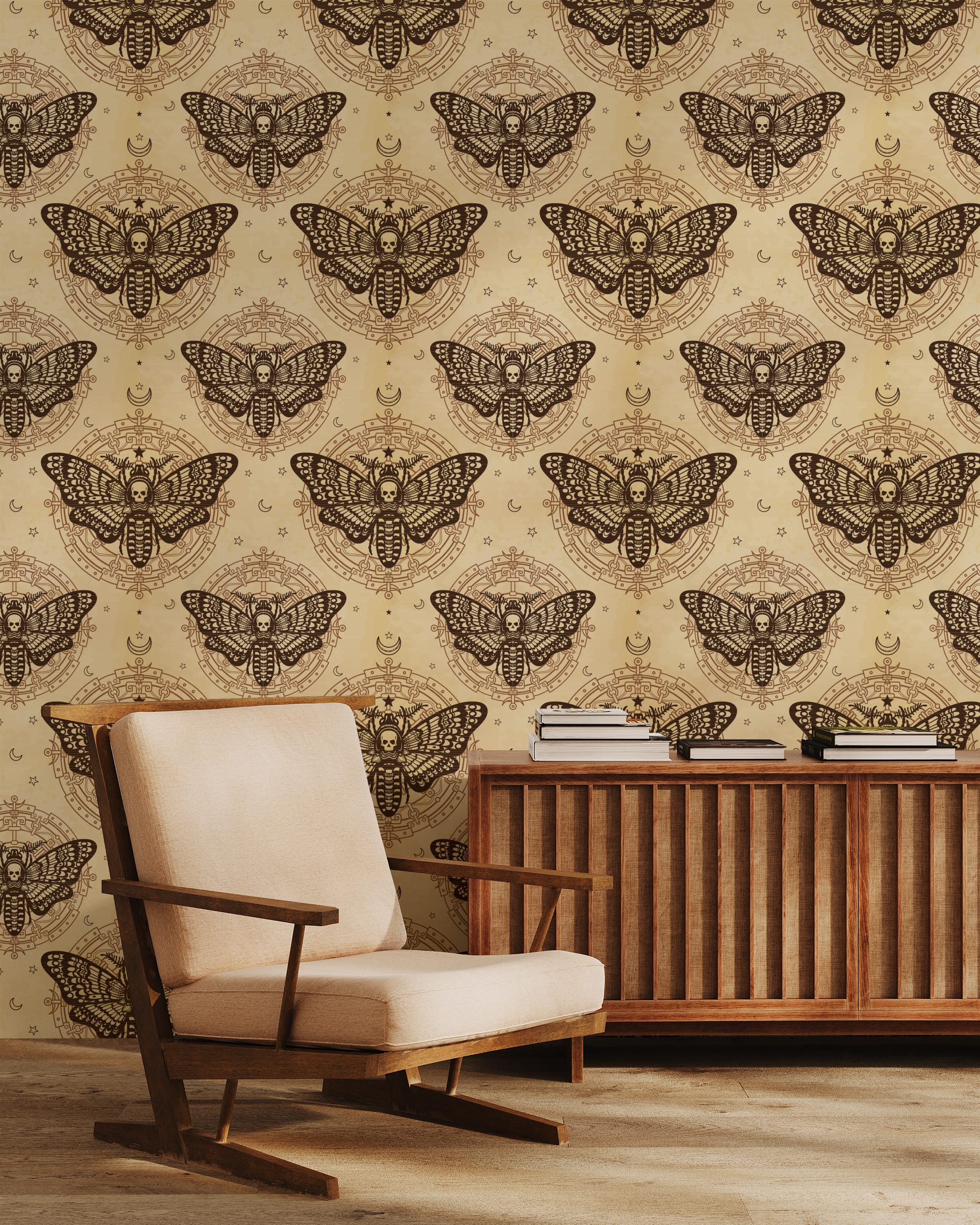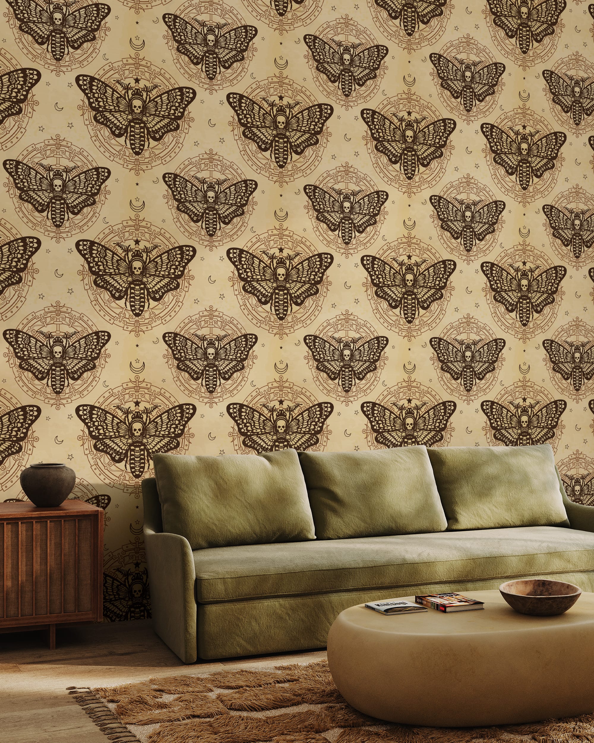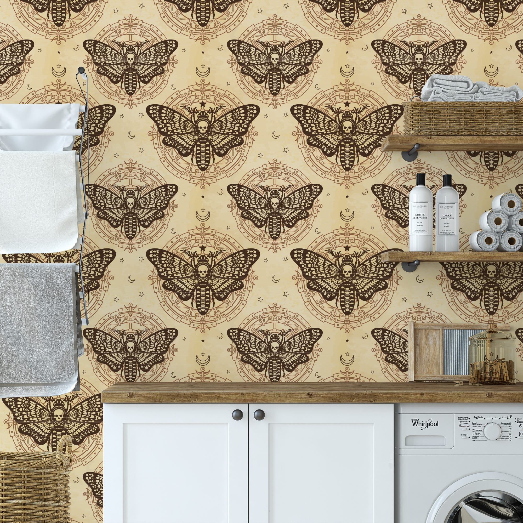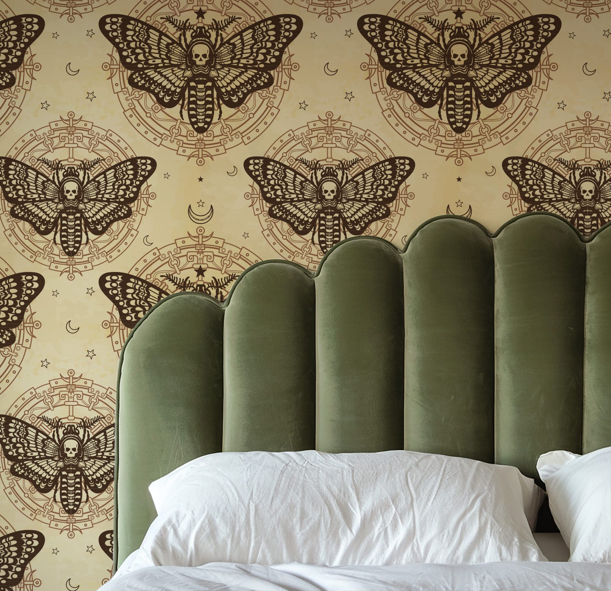 Vintage Death's Head Moth Peel and Stick Wallpaper, Occult Skull Moth Wall Mural, Dark Academia Mystical Removable Wallpaper abst-0032
